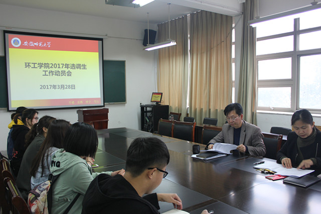 (环工公司)3月28日下午,环工公司在行政楼三楼会议室召开2017年选调生工作专题动员会。公司党委书记王峰、副书记杨友谊、毕业班辅导员以及7名报名参加选调生考试的本、硕士生参加了会议。会议由杨友谊主持。