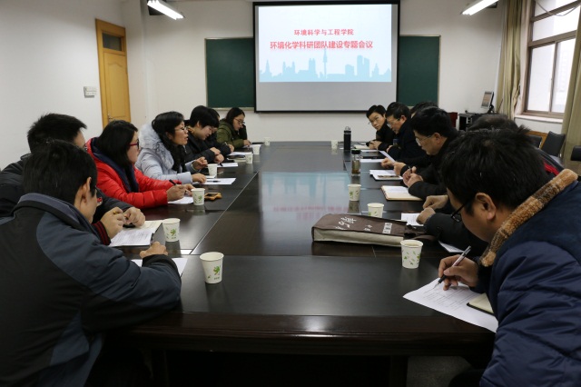 吴婷首先汇报了研究团队前期的准备情况,并结合团队现有研究基础和研究领域提出了初拟研究方向。与会教师从国家和环境产业发展趋势、当前的研究热点、学科特色凝练等角度,提出了意见和建议。经过热烈讨论,会议就三个研究方向达成了共识。即方向一、环境污染物分析方法研究:包括新型功能材料电化学传感器开发与制备、固相微萃取新技术研发和多种污染物同步检测技术研究;方向二、污染物环境过程:包括有机污染物(POPs、VOCs等)在环境中的分布、迁移与转化机理,以及C、N、P等元素的环境行为;方向三、污染物控制技术与工程:包括环境工程材料研发、污染物处理方法与技术研发、污染物处理工艺与设备研发。