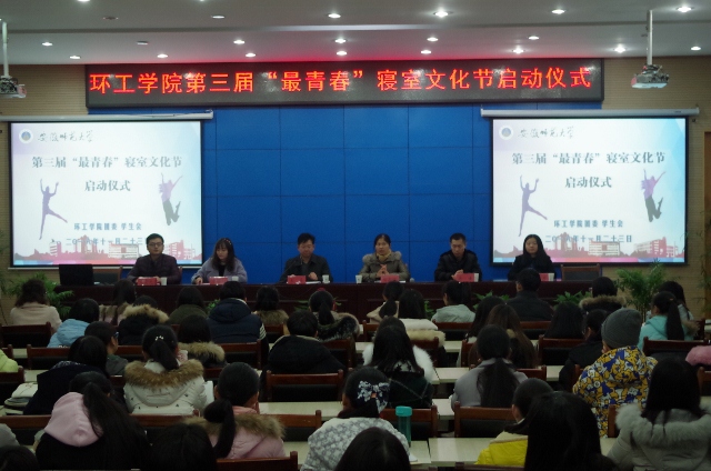 (环工公司 图/王翔宇 文/石祥乐 李霞光)争创最青春寝室,共建文明和谐校园。为构建环境美、学业优的和谐温馨、互敬互助的寝室文化氛围,11月23日晚在圆形报告厅,环工公司隆重举行第三届“最青春”寝室文化节启动仪式。公司党委书记王峰、党委副书记杨友谊出席,各级辅导员、各年级班级生活委员、2016级全体员工参加了仪式。仪式由杨友谊主持。
