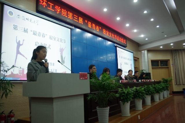 仪式上,全体与会人员共同观看公司精心录制的“最青春”主题寝室创建活动宣传片。放映过程中,宣传片中前两届成果展示赢得同学们的热烈掌声。随后,杨友谊宣读了《关于举办第三届“最青春”寝室文化节的通知》,第二届“最青春”获奖寝室代表环境工程专业2015级陈亚楠同学回顾了寝室创建过程中的心得体会,新生代表环境工程专业2016级秦雅维同学倡议全体新生积极参与文化节活动。