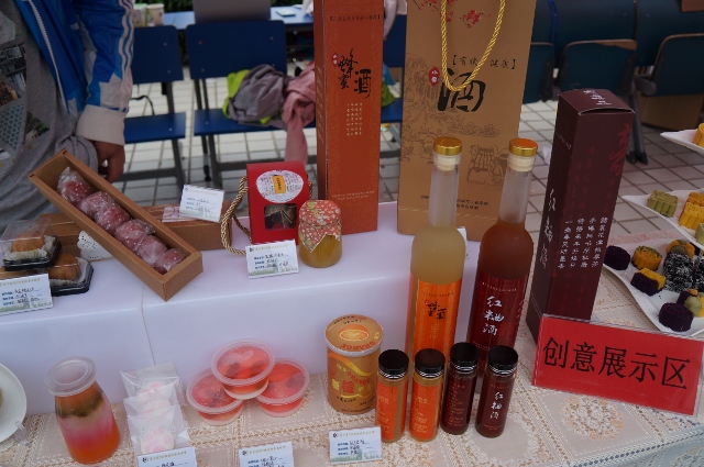专业创新与美食相结合。展示区开辟了体现了环工公司食品专业员工专业创新的作品区域。创意展示区摆放着自上学期以来,公司老师指导员工制作的参加安徽省食品创意大赛和华东片高校食品创意大赛的红粬酒、蜂蜜酒、荷粉包子、冰皮刺梨月饼、黄精糖醇枣糕、干果奶冻等12种创意食品,体现了员工过硬的专业技能和创新意识。
