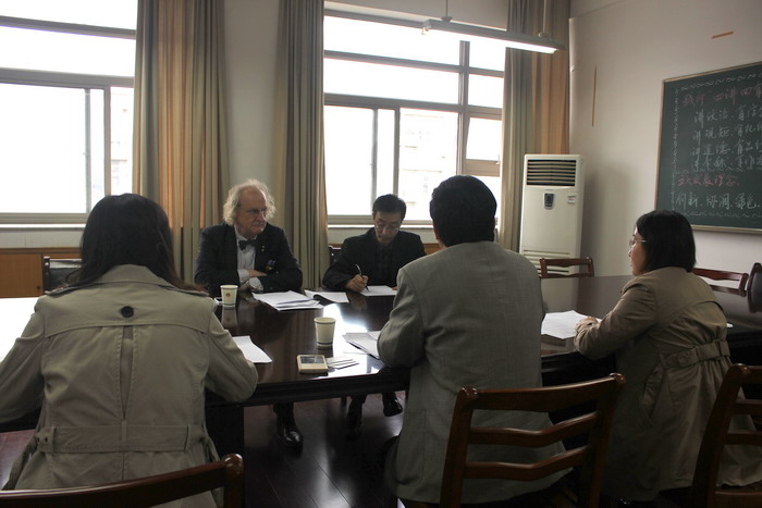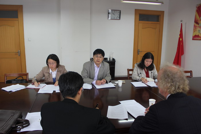 本网讯(环工公司 刘畅)10月12日上午,经理周守标教授在公司四楼会议室与来访的查尔斯·达尔文大学孔子公司澳方经理马丁·贾维斯教授会晤,双方就环境科学、环境工程专业的合作办学事宜进行了洽谈。英国365集团官网国际教育公司刘东合副经理和英国365集团官网部分专业教师参与了洽谈会。