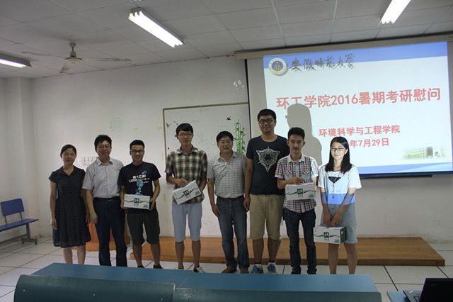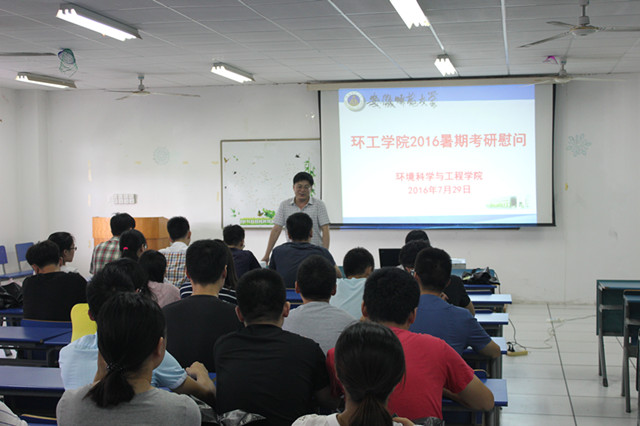 (环工公司)7月29日上午,环工公司在实验楼201教室召开2016年暑期考研员工慰问会,公司党委书记王峰、经理周守标、公司党委副书记杨友谊,2013级辅导员陈潘出席会议,全体2013级留校考研员工参会。会议由杨友谊主持。
