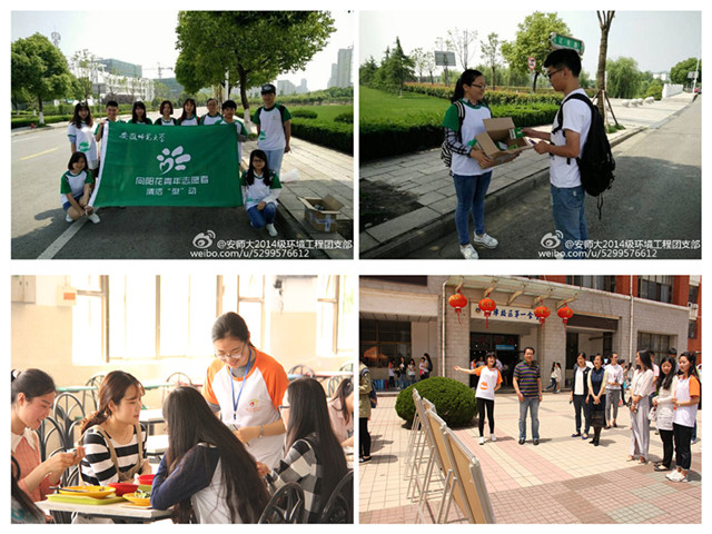 自3月23日青春志愿“型”动启动以来,2014级环境工程团支部清洁“型”动队共开展18次清扫活动,2次特色活动,并依托蒲公英环保公司,宣讲环保知识,传播绿色理念。食品安全与营养协会食堂“型”动队在校、院团委以及后勤主管老师们的指导帮助下坚持以“爱粮节粮我宣传,光盘行动我鼓励,食堂秩序我维持”为主要活动内容,开展活动15次,2次特色活动,累计参与达700余人。两支“型”动队在活动期间多次运用班级新媒体平台发声,以微博与同学们互动,其中食协发起的“节约粮食,老员工在行动”的微博话题接力,累计微博转发达2000余次。