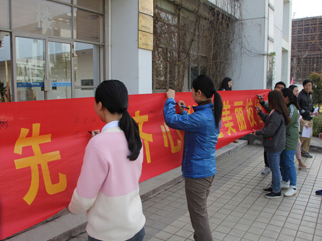 仪式最后,在场师生共同参与了签字仪式,同学们纷纷在横幅上郑重地签下了自己的名字。