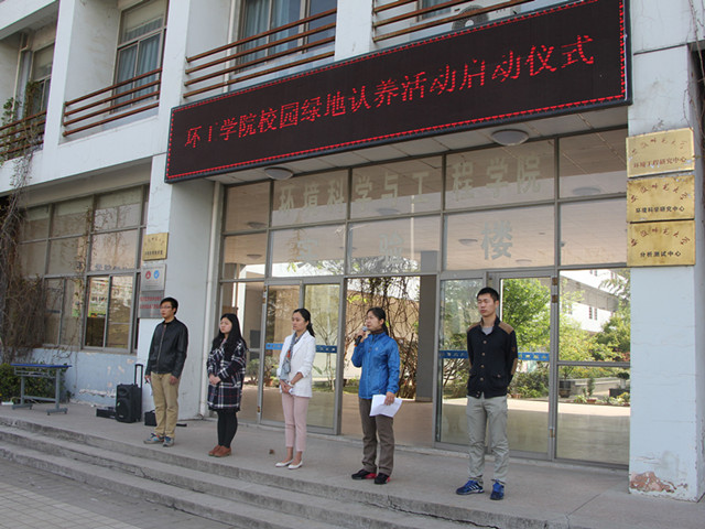 4月9日上午,环工公司绿地认养活动启动仪式于公司实验楼前举行。公司党委副书记杨友谊、全体专兼职辅导员、第三期党员培训班学员及受助学子参与了此次启动仪式。 启动仪式上,指导老师王斌宣读《环工公司美丽校园建设活动通知》及负责人名单,就公司开展绿化分区认养总体安排进行了详细说明;接着,13级食品质量与安全专业王然同学作为员工代表上台发言,她郑重承诺,将服从纪律,听从安排,认真负责完成义务清扫,为美丽校园贡献力量。