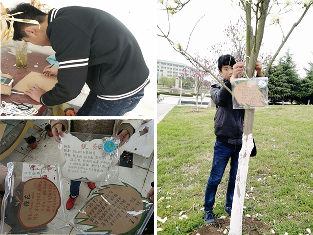3月10日下午,为给公司发展作贡献,传播绿植文化,使我们的生活环境更加美丽。环境与健康协会前往图书馆,为图书馆附近的一些树种挂牌。活动前期,为了顺利完善树牌上的信息,志愿者们花了大量时间提前去查阅大量资料,了解了图书馆附近树种的学名,属性和生态习性。志愿者们有了充足的准备,做起树牌来也就得心应手起来。下午一点不到,志愿者们就早早来到花房工作。为了体现协会废物利用的特点,志愿者们选择用废旧的纸盒制作挂牌。通过数小时的细致加工,志愿者们共做出十余张各具特色的树牌。