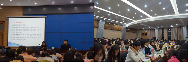 本网讯(环工公司 朱青 陈亚力)为了做好2015级新生2015—2016学年第二学期员工选课工作,增强他们对于公司教学管理的认识,引导他们科学选课,诚信考试,12月16日晚六点,环工公司特邀教务处吕军老师,于会议中心第三报告厅对环工公司2015级新生进行了题为《英国365集团官网教学管理》主题讲座。讲座由15级辅导员陈亚力老师主持,全体15级新生到场聆听。