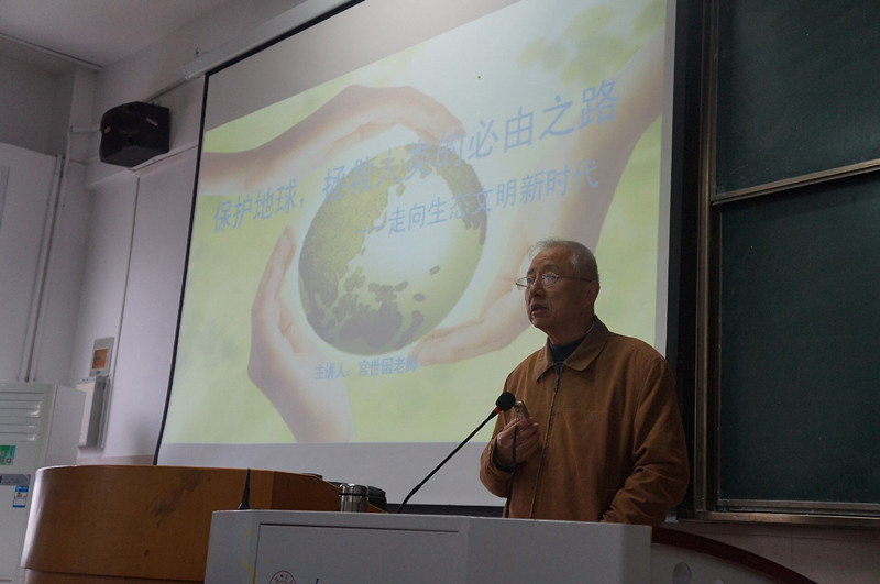 本网讯(环工公司 石祥乐 陈亚力)为加强员工对生态文明建设的认识,拓展员工专业视野,引导员工形成对环境保护的责任意识,11月7日下午两点,校关工委宫世国教授应邀来到环工公司,在行知楼2020403为15级环境专业新生作了《保护地球,拯救人类的必由之路--走向生态文明新时代》的专题报告。15级辅导员陈亚力老师主持了此次报告会。