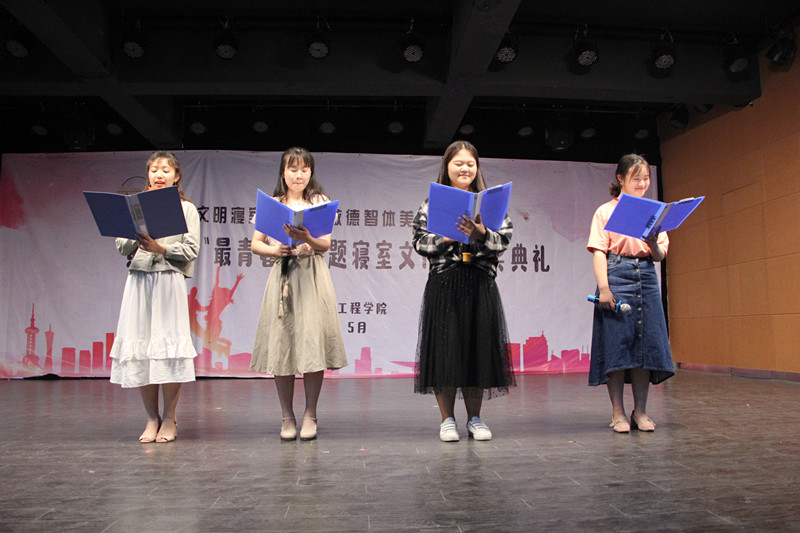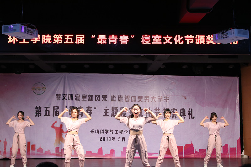 颁奖典礼由三个颁奖批次,三个文艺节目和三项汇报穿插进行。依次颁发了最青春五类特色活动奖项、最青春五类主题寝室奖项和最青春寝室奖项。舞蹈表演《pick me up》、武术《巾帼英雄》、合唱《仰望星空》,一个个精彩的表演将现场氛围推向高潮。