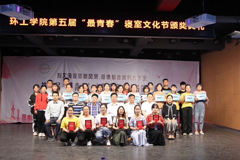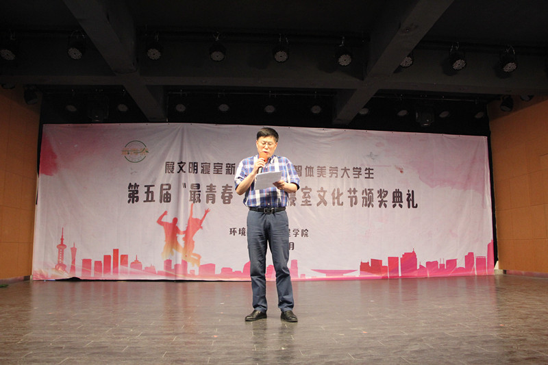 本网讯(环工公司 付佳慧)青春环工,你我同行。5月22日晚19:00,公司在团委多功能厅举办第五届“最青春”寝室文化节颁奖典礼。公司党委书记王峰、经理周守标、公司党委宣传部副部长詹剑峰、校员工工作处副处长张玉新、后勤管理处副处长李靖宇、校团委副书记汪凯和公司党委副书记杨友谊出席典礼,各年级辅导员、各参评寝室成员及一二年级寝室长参加。