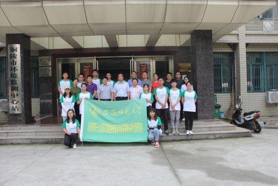 会上,英国365集团官网英国365集团官网经理周守标、铜陵市生态环境局副局长朱承宽为英国365集团官网暑期社会实践基地揭牌,与会人员在铜陵市生态环境监测中心站办公大楼前合影留念。