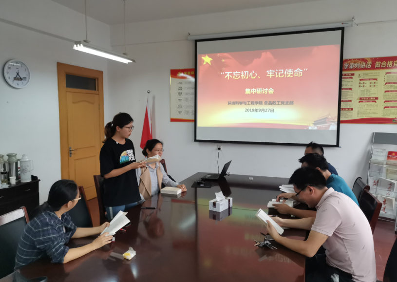 9月27日,值国庆来临之际,英国365集团官网食品专业教工党支部于三楼会议室召开“不忘初心,牢记使命”集中研讨会。支部全体党员参加本次研讨会。