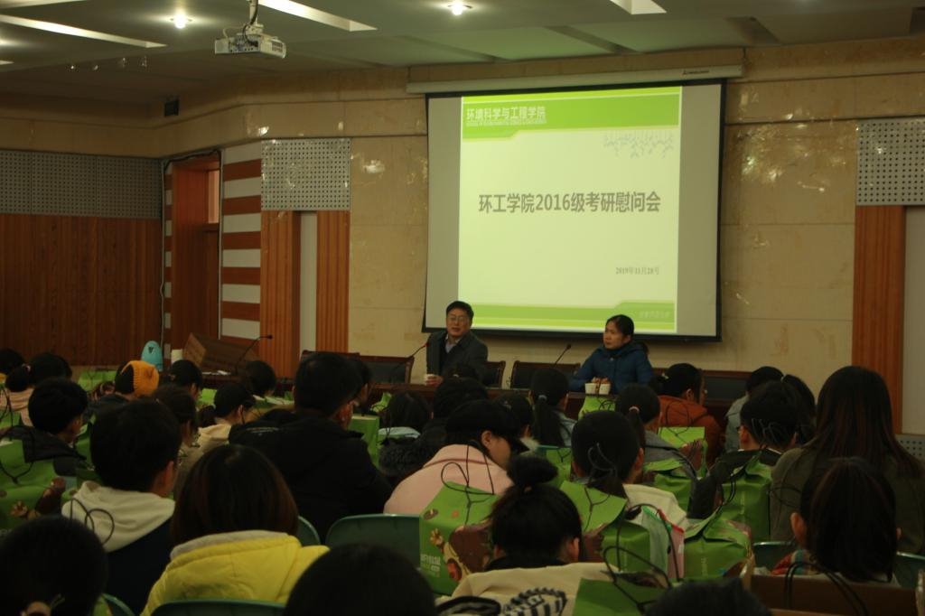 2019年11月28日下午,环工公司在财务楼二楼阶梯教室召开了2016级考研员工冬季慰问会。经理周守标、党委副书记杨友谊走近员工,代表公司看望慰问考研学子。
