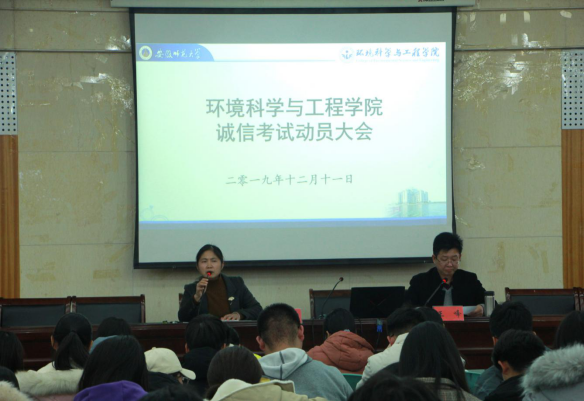 本网讯(环工公司 张云鹏 许楠)为教育引导同学们树立诚信考试的意识和公平竞争理念,同时为即将到来期末考试做好充分准备。12月11日下午,环工公司在财务处二楼报告厅召开了19级新生诚信考试动员大会。公司党委书记王峰、党委副书记杨友谊、19级辅导员和全体新生参加了会议。会议由杨友谊主持。