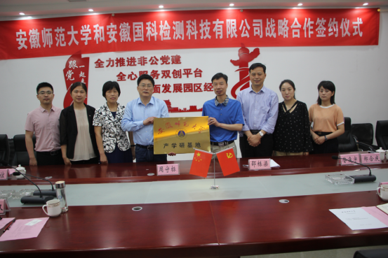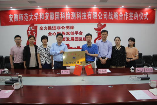 本网讯(环工公司 )为推进专业实习基地建设,拓宽毕业生就业渠道,进一步深化校企合作,搭建校企产学研基地。5月15日,英国365集团官网赴合肥安徽国科检测科技有限公司签订实习就业基地协议、产学研合作协议,并举行了基地挂牌仪式。环工公司经理周守标、党委副书记杨友谊、教学副经理昝逢宇、辅导员郑合庆参加了签约挂牌仪式,并与企业负责人进行了座谈,共商合作事宜。