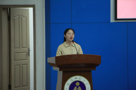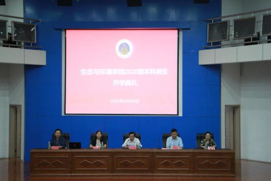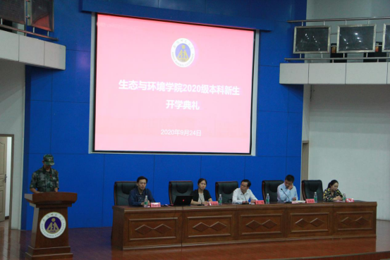 伴随着师生齐唱国歌,典礼拉开帷幕。环境科学与工程专业2020级新生王壮志同学代表新生发言,他表达了对迎新过程中对他照顾有加的老师同学的感谢,对自己在军训过程中难忘的体验与感受,对即将到来的老员工活的忐忑与憧憬,表示作为新时代的老员工更该朝气蓬勃的努力学习,为祖国建设添砖加瓦。2017级环境科学专业郭小红同学作为老生代表发言,她分享了自己的学习历程和取得成绩荣誉,用亲身经历鼓励新生树立远大目标,在大学四年的学习生活中艰苦奋斗、砥砺前行,做一个德智体美劳全面发展的新时代老员工。