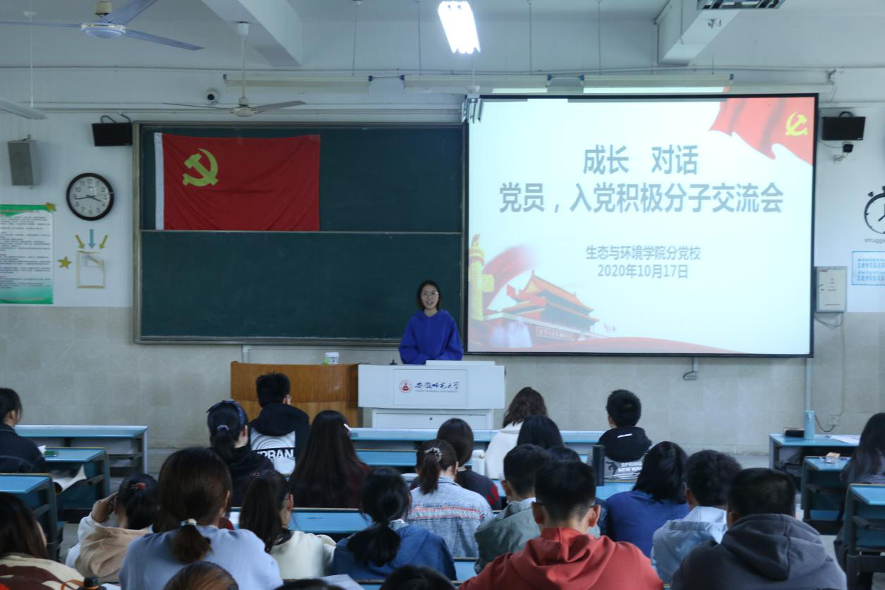 会议伊始,郑合庆老师介绍了此次交流会的主题,并表示希望党员同志们能将自己的入党经历和学习经验分享给与会成员,也希望各位入党积极分子认真学习,向党员同志看齐。随后,党员代表2020级职业技术教育专业研究生魏嘉瑜、2017级环境科学专业本科生张菊琴分别上台发言,向大家分享了个人的入党动机、入党经历和学习经验,给大家传达了爱国爱党,忠于党,忠于祖国,忠于人民的思想,并强调了奋斗对新时代青年的重要性,告诫大家要身体力行,做新时代的奋斗者,希望大家争取早日成为一名合格的共产党员,不忘初心,乘风破浪,实现人生价值和理想。