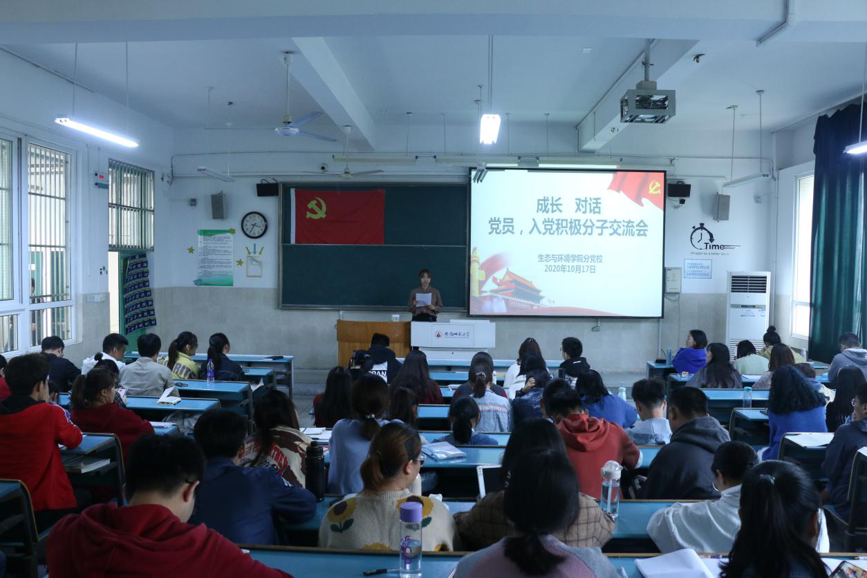 本网讯(生环公司分党校) 10月21日下午15:30,以“成长·对话”为主题的交流会在行知楼2010309教室顺利召开。生环公司分党校第1期入党积极分子培训班的70学员以及第1期党员教育培训班的16名党员同志参加此次交流会。本次会议由分党校班主任郑合庆主持。