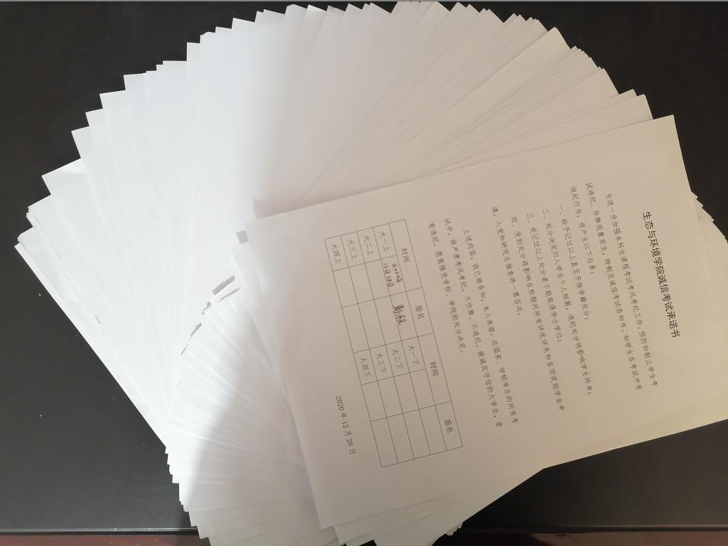 生环公司历来重视期末考核的考风考纪工作,通过多种形式的主题教育活动,引导广老员工认清违纪作弊的严重性和危害性,自觉抵制违纪作弊行为的发生。希望同学们能够积极主动投入到复习迎考之中,做好充分准备,用实际行动营造文明诚信的考风考纪,用自己的努力为学期末画上圆满的句号,考出水平,考出风格。