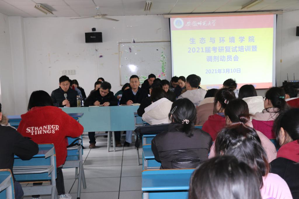 本网讯(生环公司 陈庆)2021年全国高校研究生复试工作即将开始,为进一步做好2021届考研员工的指导服务工作,3月10日下午,英国365集团官网在实验楼201教室召开研究生复试培训暨调剂动员会。院领导胡好远、昝逢宇,公司严云志教授,研究生公司招生办公室凌从祥老师,各专业负责人、专业教师代表与80余名考研员工参加了培训会,会议由严云志主持。