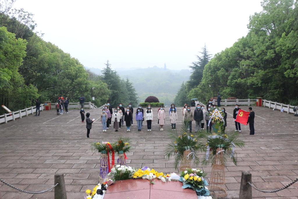 松柏苍翠,庄严肃穆。党员代表向革命英烈敬献花篮,全体师生在烈士纪念碑前整齐列队,向革命烈士三鞠躬并默哀致敬,表达了大家对革命英烈由衷的敬佩和缅怀之情。在鲜红的党旗下,全体师生重温了入党誓词。张伟在仪式上讲话,指出活动是生动的党史、革命史学习教育,要以革命先烈的理想信念补足精神之“钙”,继承和发扬革命精神和光荣传统,把爱国之情,报国之志化作实际行动,扎扎实实做好本职工作,争先进位,砥砺前行。