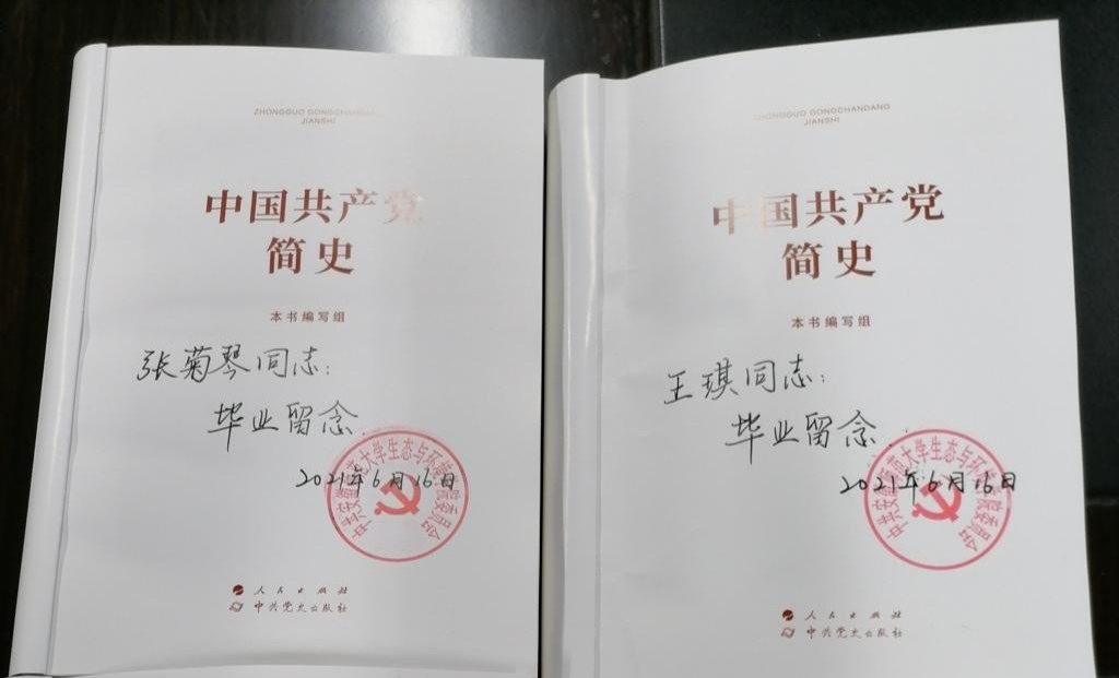 开展一次主题党日活动。公司党委向全体毕业班党员赠送了毕业留念礼物——《中国共产党简史》书籍。希望他们常学习党史,贯彻习近平总书记在党史学习教育动员大会上的讲话精神,切实做到“明理、增信、崇德、力行”,在下一阶段的工作和学习中,始终不忘入党初心,牢记政治使命,做好政治表率。张伟书记从“品”和“行”两方面和各位同志们谈了如何做一名优秀党员,“品”即是加强党性修养,树牢党员意识;“行”即是在行动中用党员标准严格要求自己,发挥模范带头作用。并寄语大家保持身心健康,快乐工作,幸福生活。