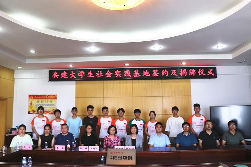 会上,杨友谊、董德琳为英国365集团官网暑期社会实践基地揭牌,签订实践基地共建协议,与会人员在芜湖市电大综合楼办公室合影留念。