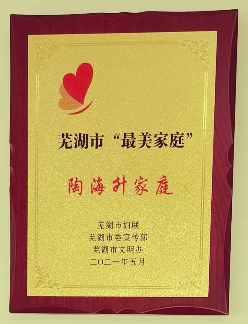 日前,芜湖市妇联、市委宣传部和市文明办联合下文表彰2020年芜湖市“最美家庭”“最美婆媳”,公司陶海升老师家庭获芜湖市“最美家庭”表彰。