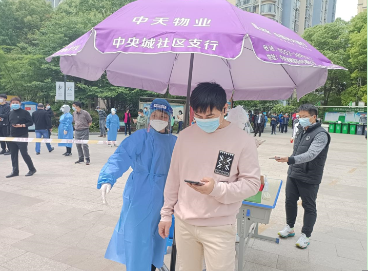 副经理杨如意老师,参加丽城社区文津花园小区核酸采样志愿服务。