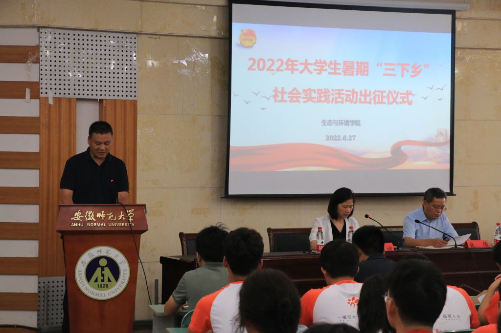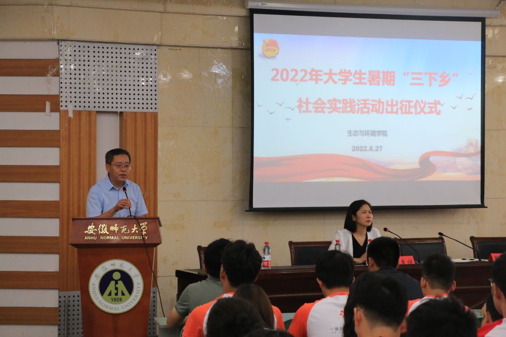 随着共青团团歌的奏响,出征仪式正式开始。胡好远宣读了26支公司2022年暑期社会实践团队名单。随后,2020级环境科学专业张耀萱同学代表全体暑期社会实践成员发言,表示将深入基层,努力学习;突出主题,讲求实效;严守纪律,安全第一;积极投身社会实践,磨炼意志,锻炼本领,充分展现新时代青年形象。