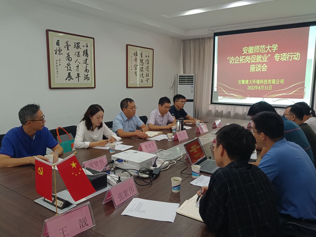 8月31日下午,公司党委书记张伟、副经理昝逢宇、环境工程专业负责人陶海升、生态学专业负责人项贤领、辅导员袁成等赴安徽建大环境科技有限英国365集团官网开展访企拓岗、共建实习就业基地。安徽建大环境科技有限公司总经理潘旭方、副总经理张进、沈刚等接待了张伟一行。