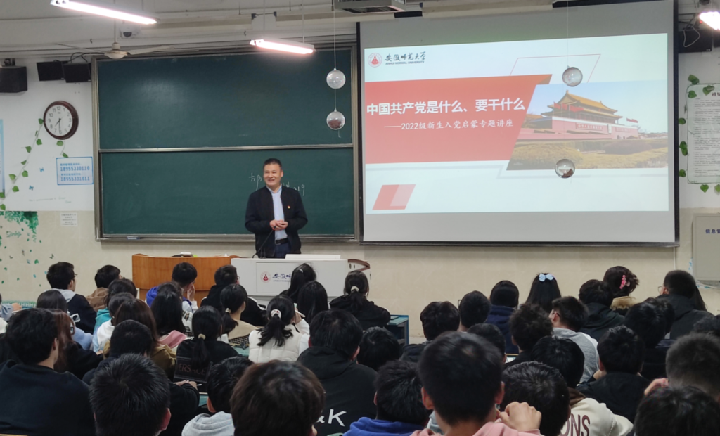 10月27日晚上,公司党委书记张伟,党委副书记、经理胡好远,党委副书记杨友谊以“中国共产党是什么、要干什么”为题,从“中国共产党是什么”“中国共产党要干什么”“当代青年要如何做”“如何申请加入中国共产党”四个方面,向2022级各专业新生讲述了中国共产党的性质、宗旨、百年发展历程和重大成就等,希望同学们立大志、明大德、成大才、担大任,在政治上做表率、在学习上做表率、在成长上做表率、在服务上做表率,坚定不移听党话、跟党走,力争早日成为光荣的中国共产党党员。