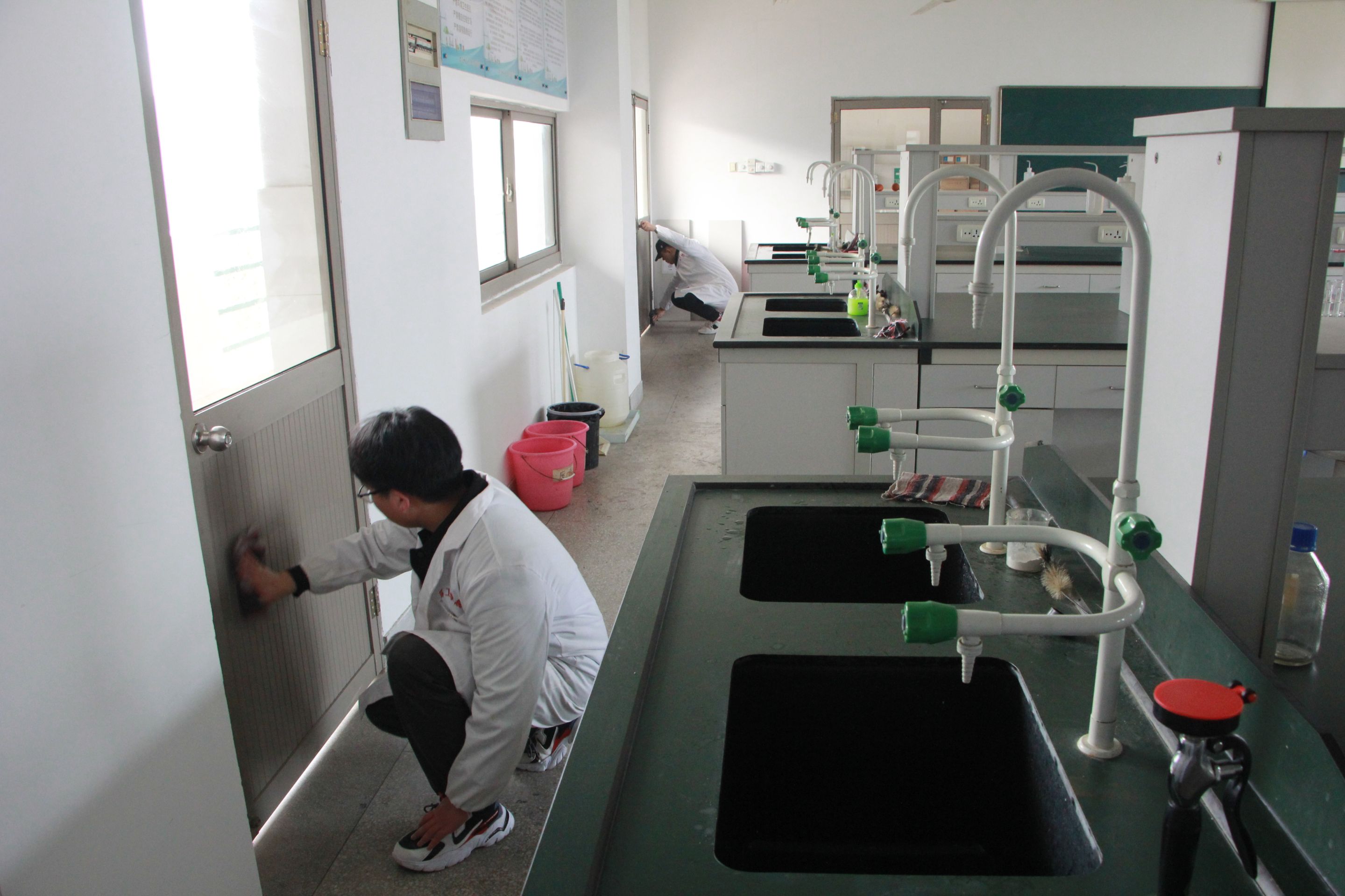 张伟在动员讲话中指出,本次活动是公司“学雷锋”系列活动的组成部分,是践行志愿服务精神的具体实践,员工党员应该自觉在志愿服务、社会实践中涵养品行,提升素养。活动也结合党员活动日,是党员主动作为、服务公司师生的一件实事,希望员工党员从身边的小事做起,牢记党员身份,发挥积极作用,做到一名党员就是一面旗帜。随后,在实验中心老师的指导下,党员同学们分楼层、分区域对实验楼门窗玻璃、走廊墙砖、栏杆和公共实验室等进行了卫生清扫。