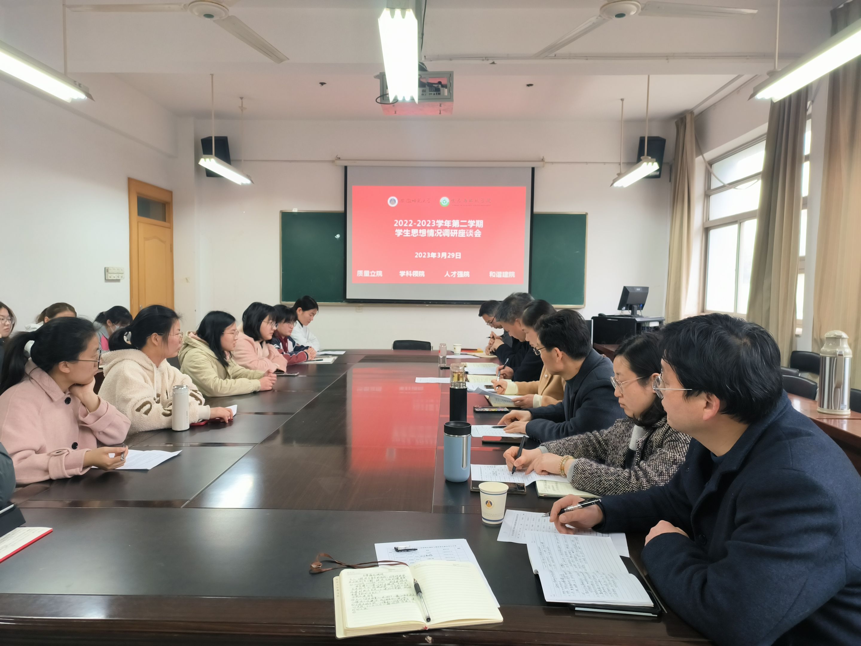 3月29日下午在公司行政楼3楼会议室,公司组织召开本学期员工思想情况调研专题座谈会,经理胡好远、党委副书记杨友谊、教学副经理严云志、生态学拔尖班专业负责人温新利、生态学专业负责人项贤领、环境工程专业负责人陶海升、环境科学专业负责人刘畅、辅导员王梓和各班级员工代表参加会议。会议由杨友谊主持。