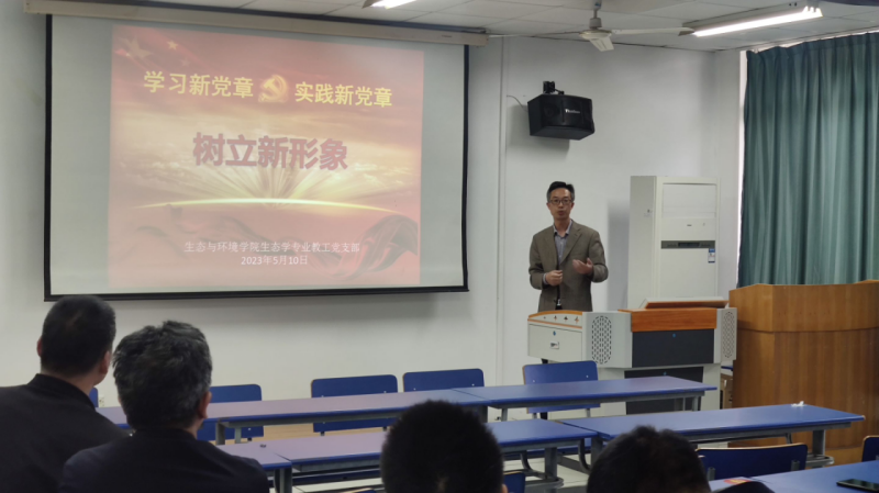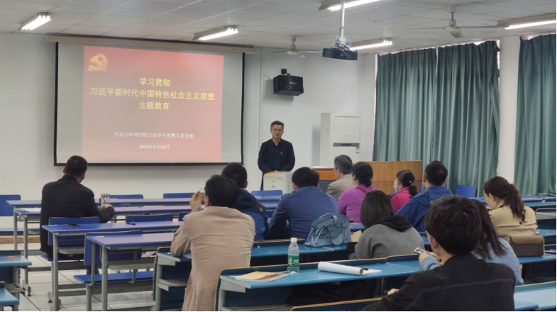 5月10日下午,生态学专业教工党支部在实验楼201教室开展了学习贯彻习近平新时代中国特色社会主义思想主题教育专题党课和学习研讨。经理胡好远、副经理严云志及支部全体党员参加了专题活动,活动由党支部书记项贤领主持。