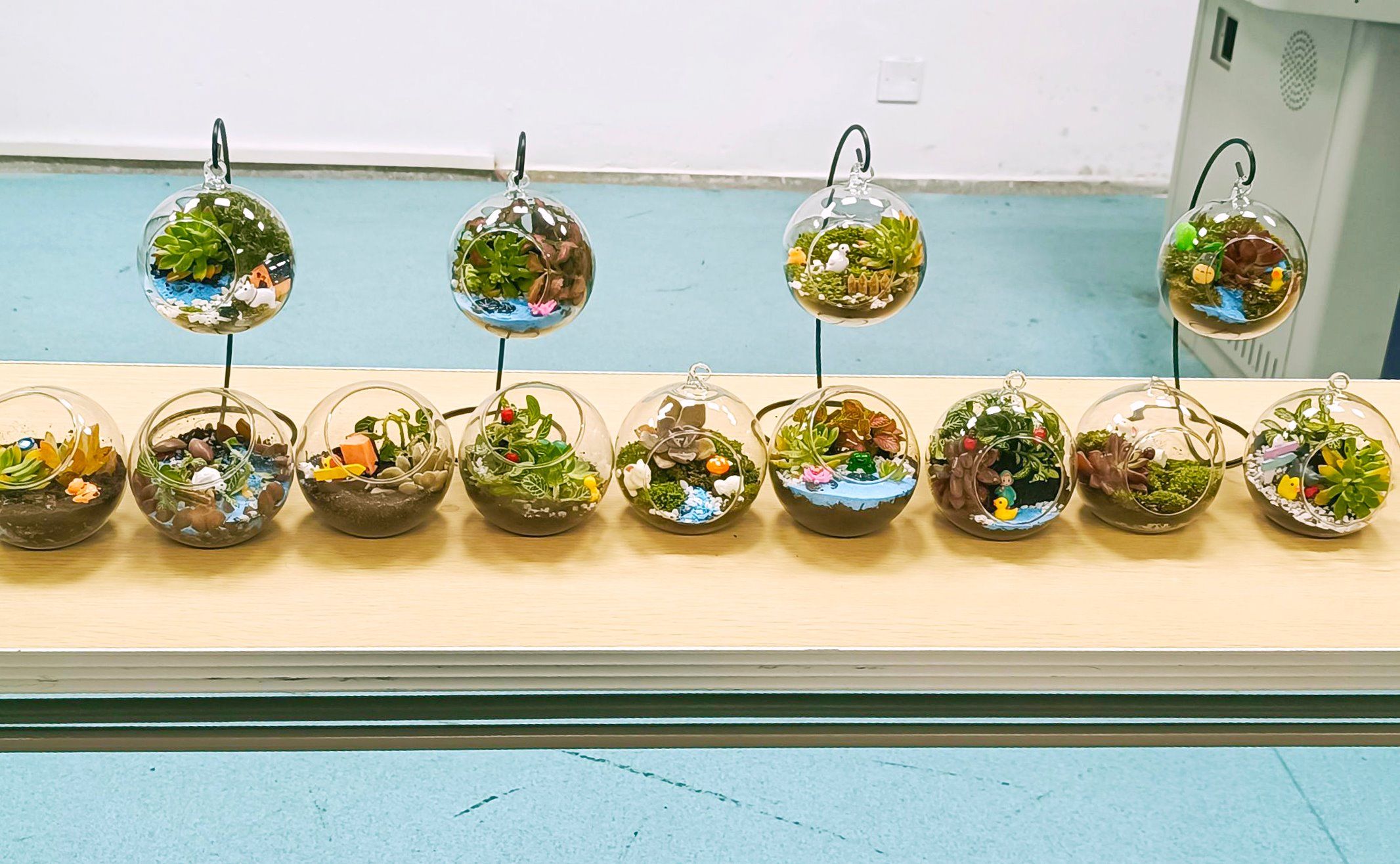 在问题抢答环节,15支队伍针对世界地球日的相关知识与常见植物的识图进行抢答,参赛选手准备充分,所有题目均抢答正确。在生态瓶制作环节,协会提前为参赛选手们准备了营养土、苔藓、多肉植物、造景摆件等多种制作材料,各支队伍发挥想象,通过构思与创作制作了集科学、美观一体的生态瓶。随后,参赛选手们依次向评委阐述生态缸设计理念,展示各组作品。活动最后,获奖选手与评委合影留念。
