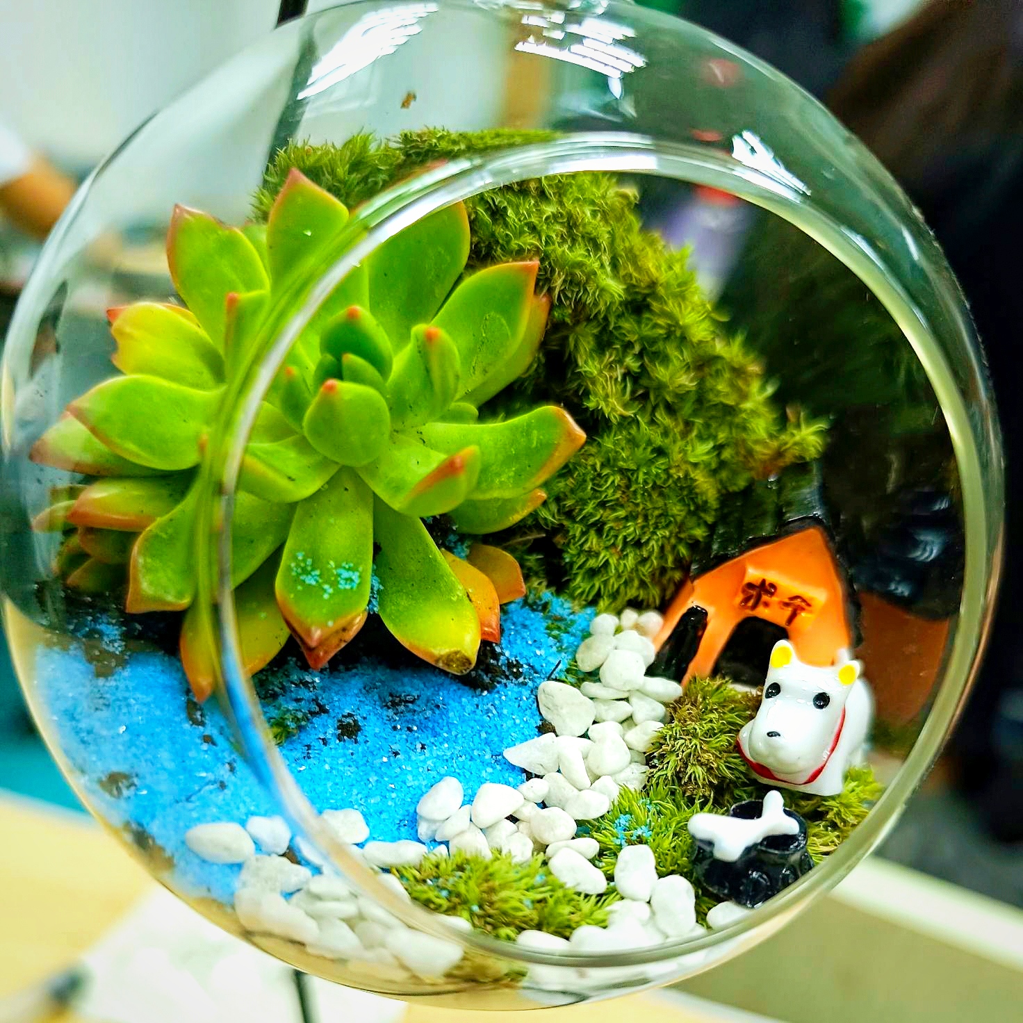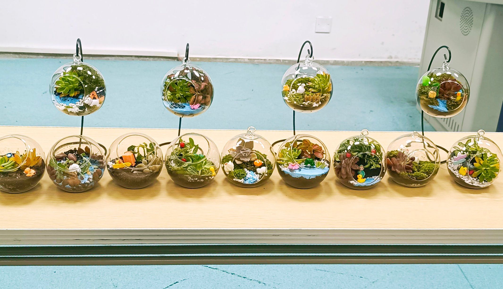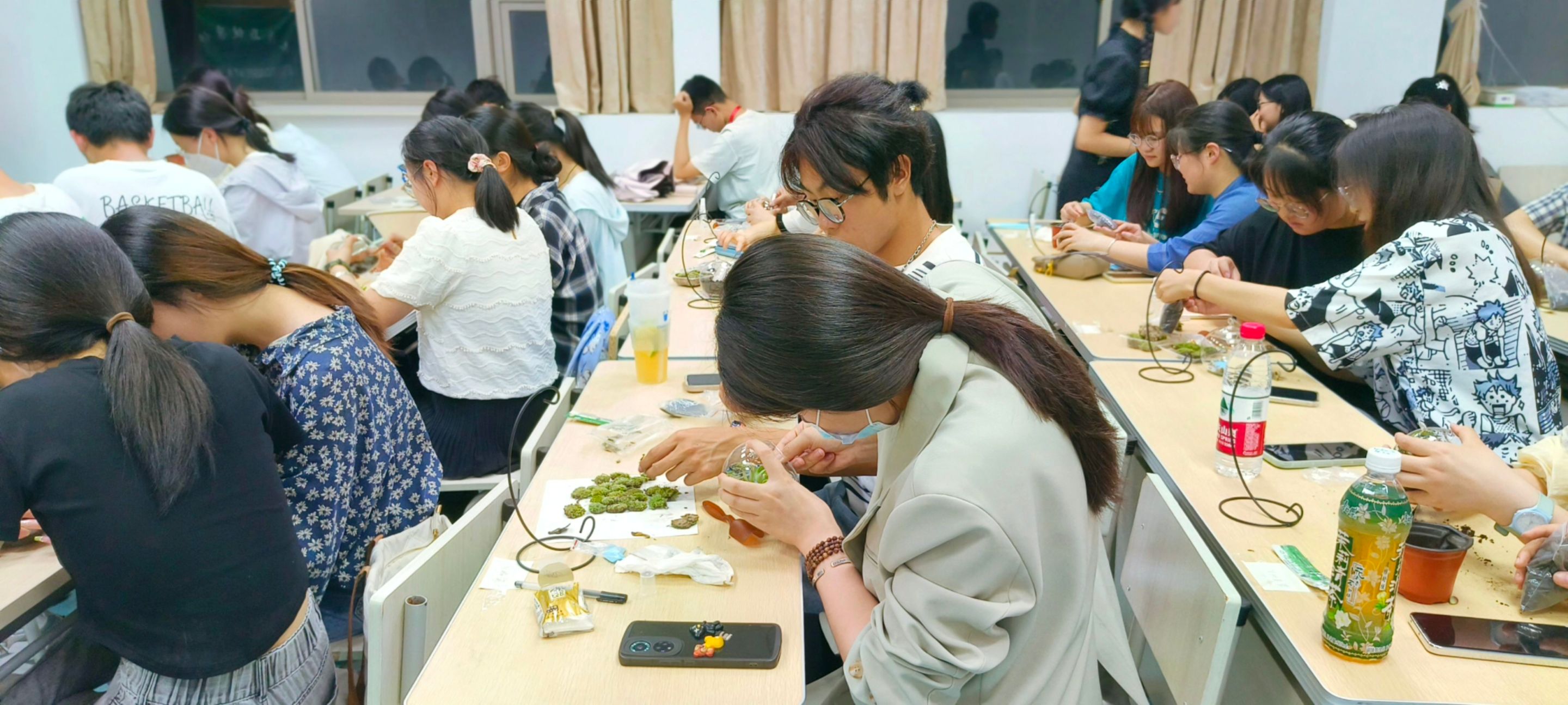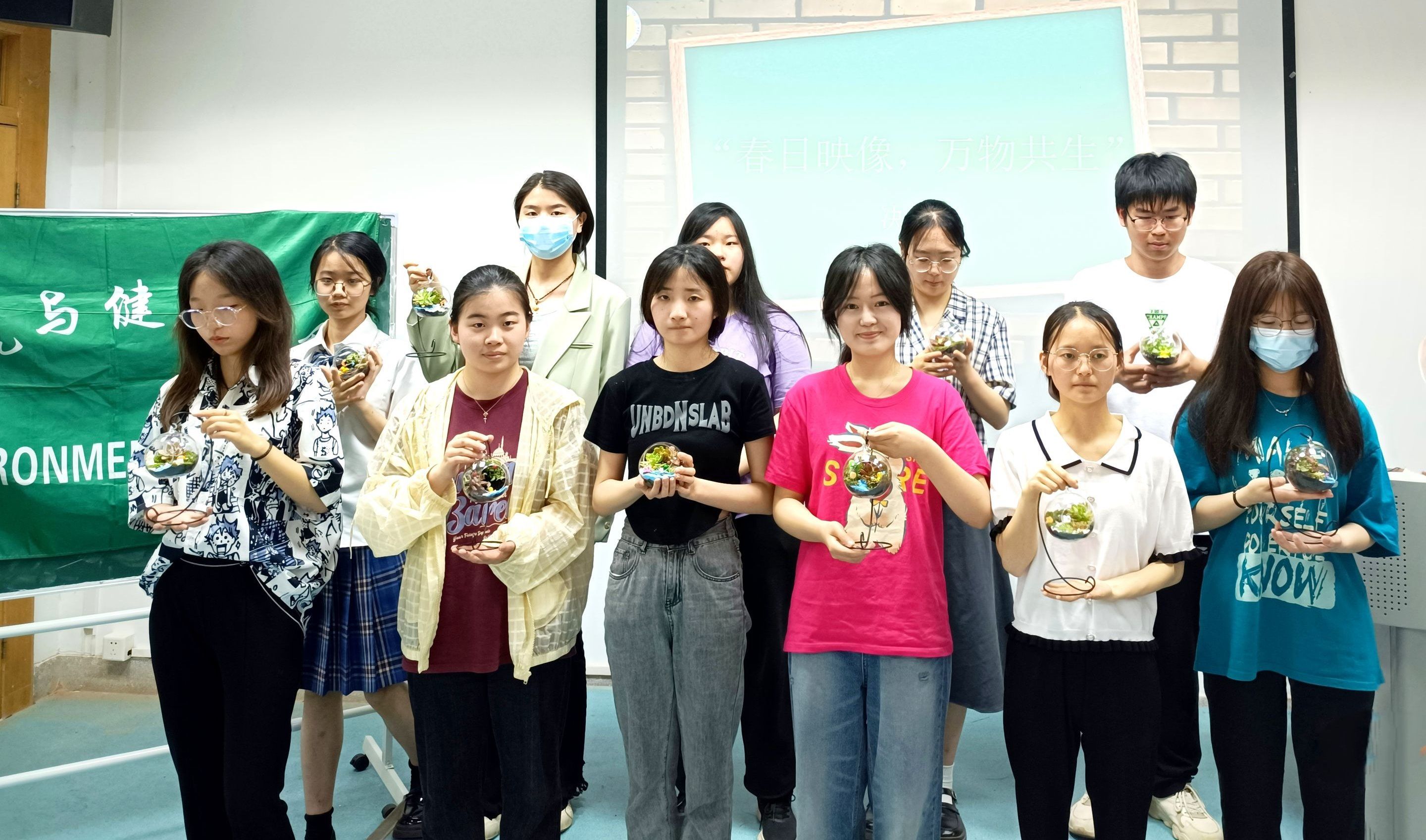 在问题抢答环节,参赛队伍针对环保的相关知识与常见植物图片辨识进行抢答,参赛选手准备充分,所有题目均抢答正确。在生态瓶制作环节,协会提前为参赛选手们准备了营养土、苔藓、多肉植物、造景摆件等制作材料,各队队员发挥想象,团结协作,通过构思与创作制作了集美观生动于一体的生态瓶。随后,参赛选手们依次向评委阐述了生态瓶设计理念,展示各组作品。活动最后,获奖选手与评委合影留念。