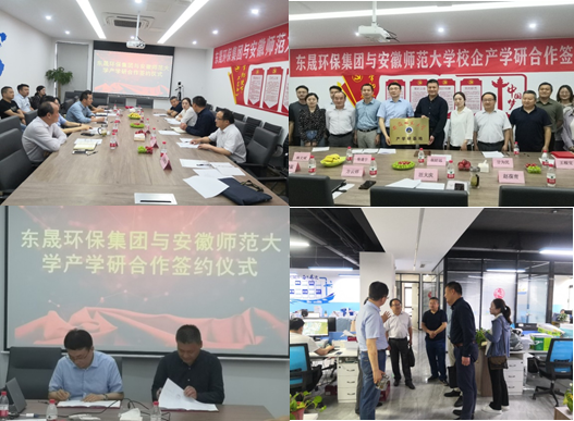 在东晟环保科技集团(安徽)股份有限公司,公司副董事长汪大庆、副总裁兼环境咨询中心总经理方云祥、副总裁刘晓猛、副总刘军、总工程师赵葆青和公司毕业生伍红亮、杨刚、张晓、杨亮亮、石晓菁、何玉环等参加了会议。汪大庆介绍公司基本情况和环境咨询、环境检测、环境工程和环保设备四大业务板块等一站式环境服务体系方面取得的成果。胡好远从人才培养、科学研究、学科团队等方面介绍了公司的基本情况,尤其是生态学高峰学科和省部共建协同创新中心等学科平台建设情况。昝逢宇介绍了公司学位点情况和研究生联合培养情况。胡好远和汪大庆代表双方签订了产学研合作协议并授牌。随后,胡好远一行参观了东晟环保科技集团实验室。
