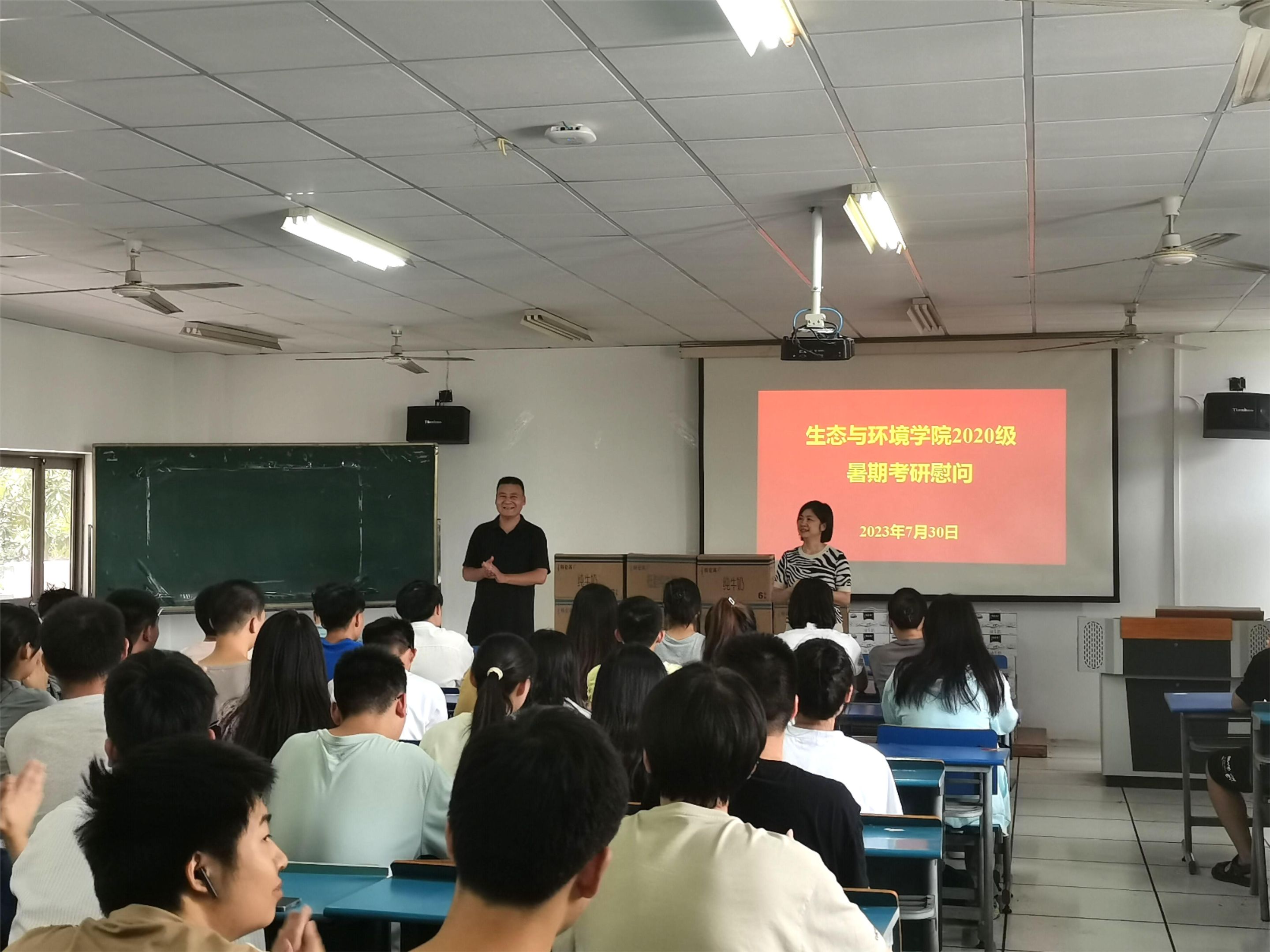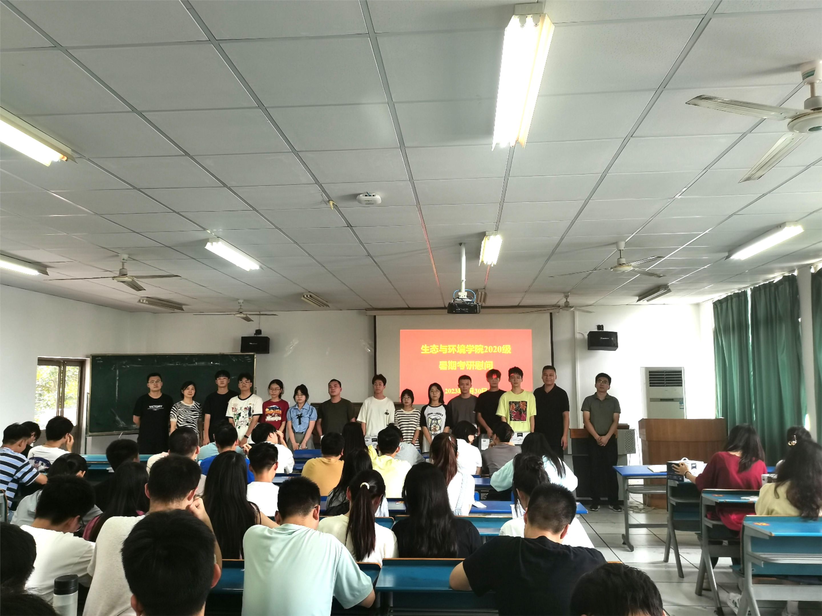 7月30日下午,英国365集团官网2020级暑期考研慰问会在实验楼201举行,公司经理胡好远、党委副书记杨友谊,2020级辅导员袁成、屈亚舒及2020级暑期留校同学参加。