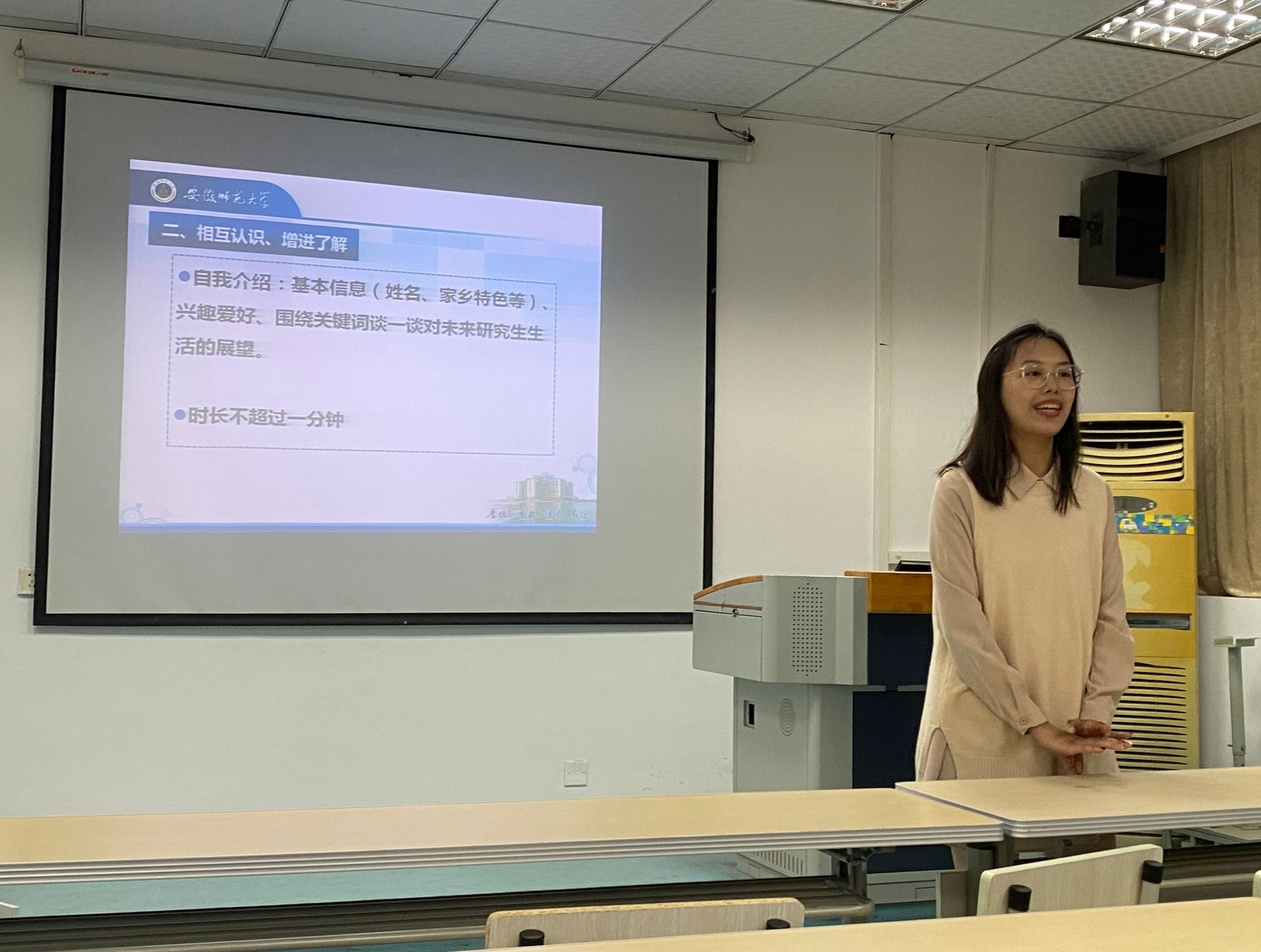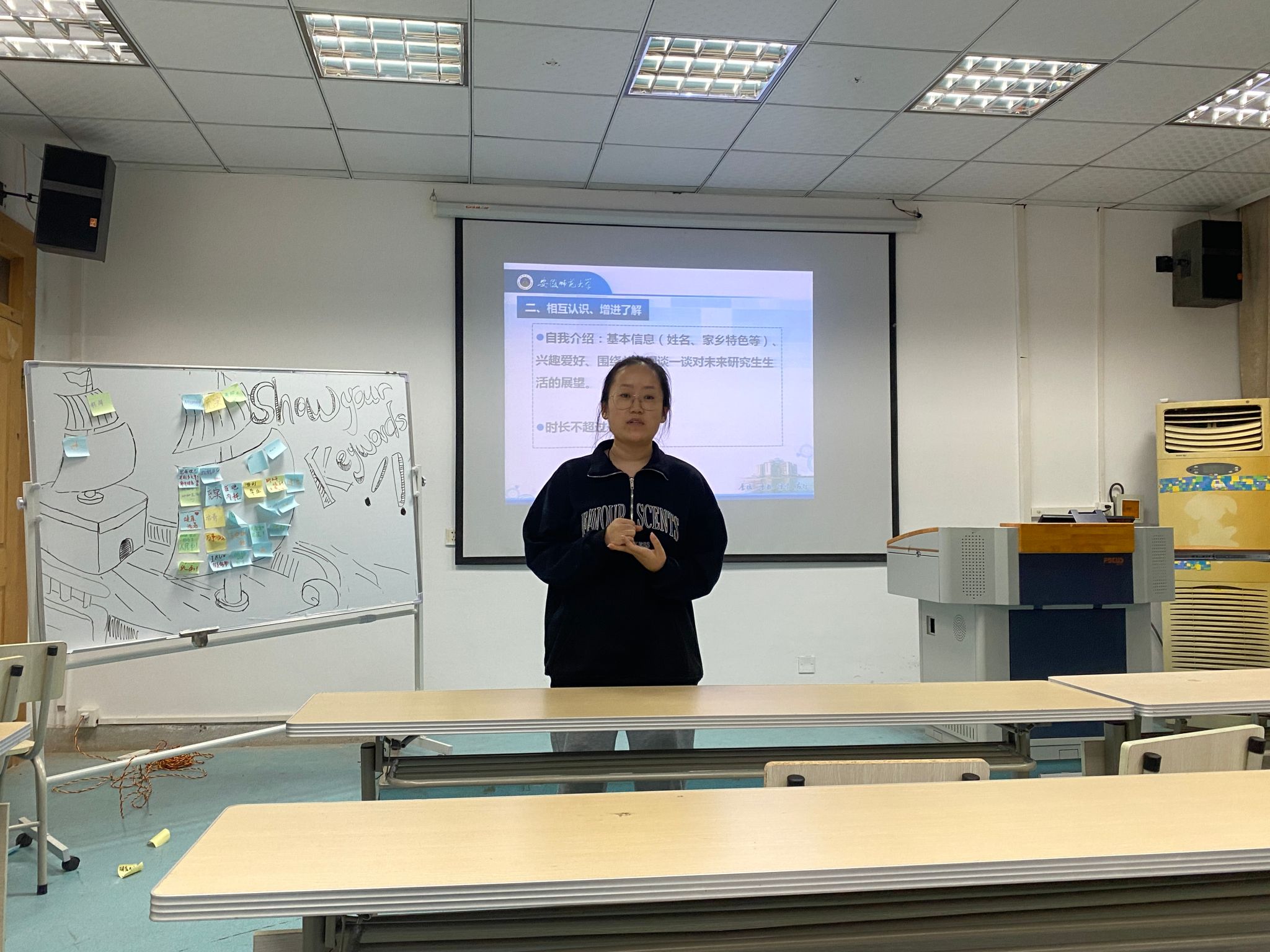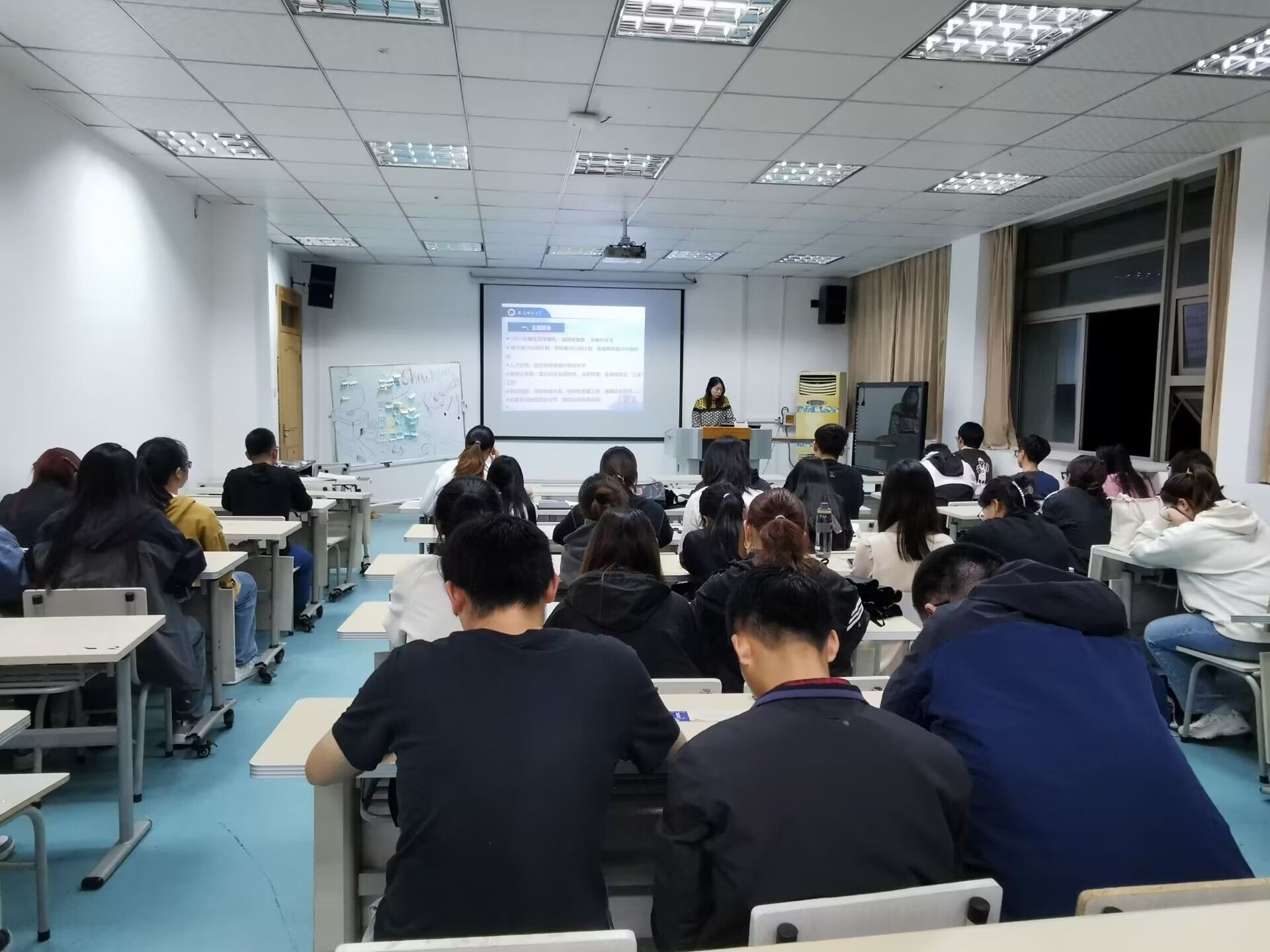 最后,研究生辅导员王丹丹作总结发言,希望每位同学能牢记“厚德、重教、博学、笃行”的校训,大力弘扬“厚重朴实、至善致远、追求卓越、自强不息”的师大精神,尽早做好并努力实践自己的人生规划,怀揣梦想,扬帆起航!