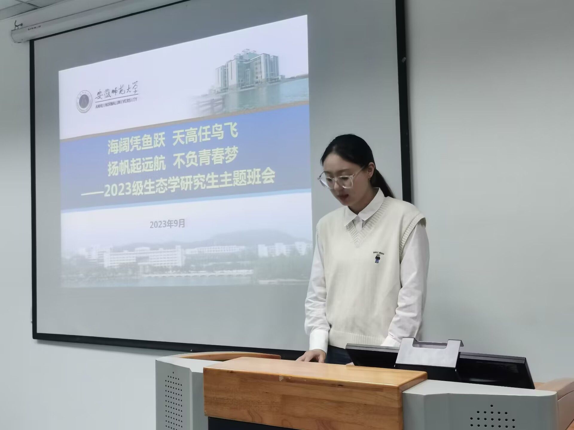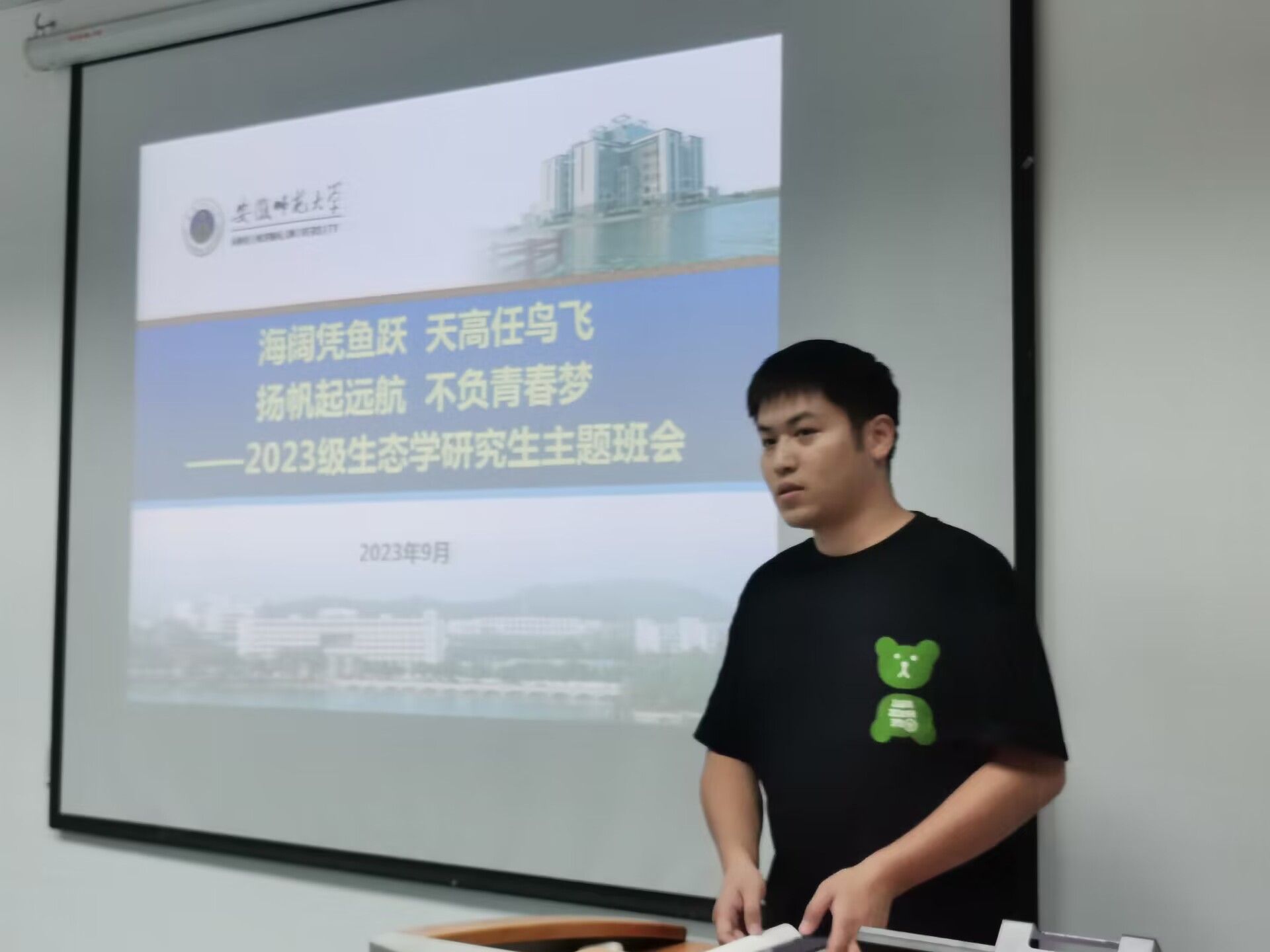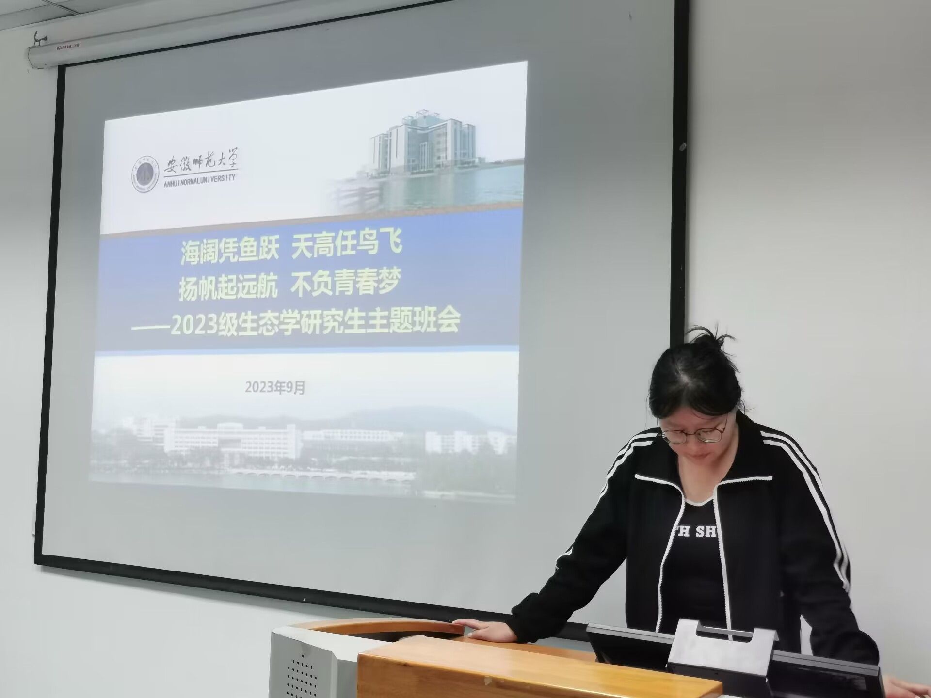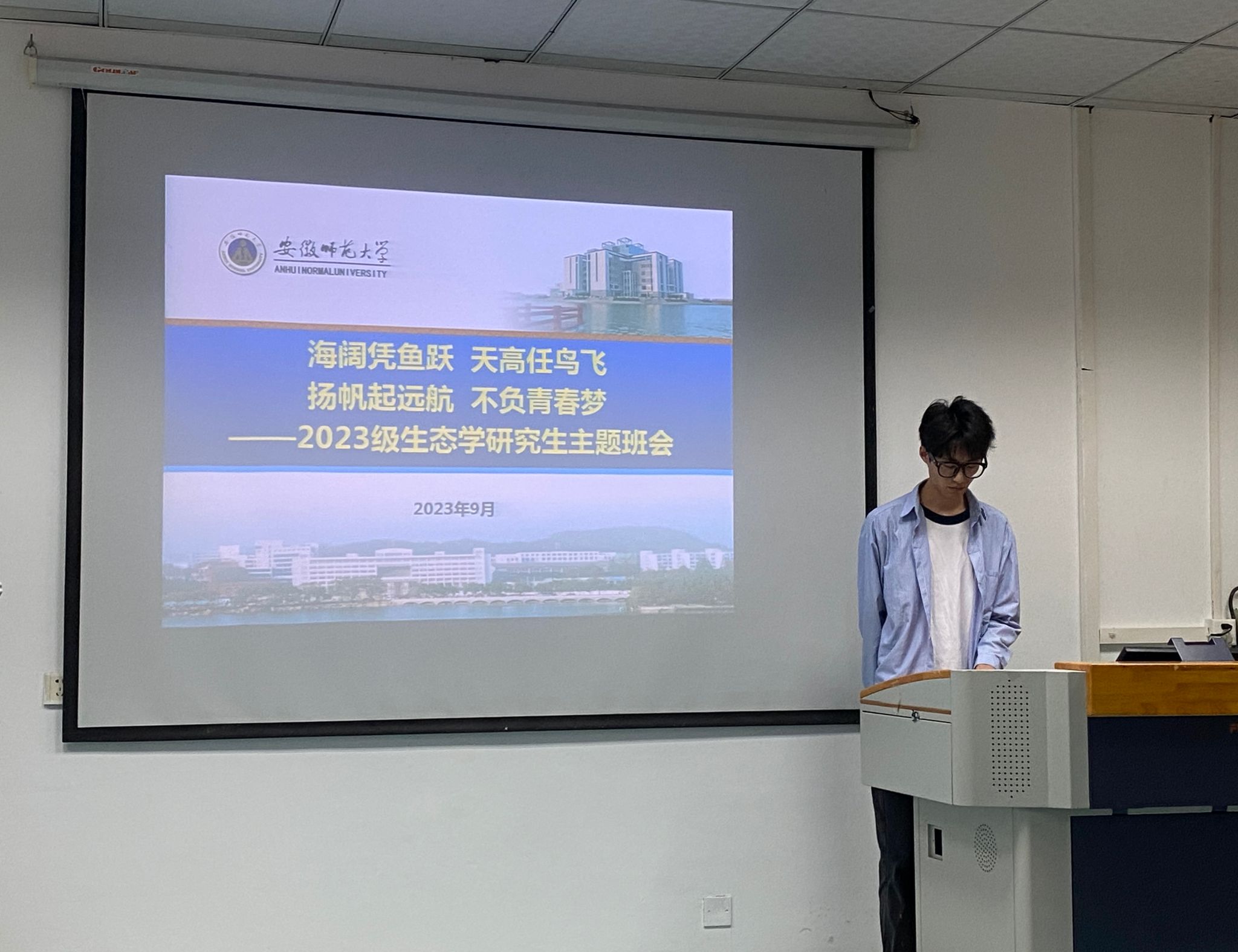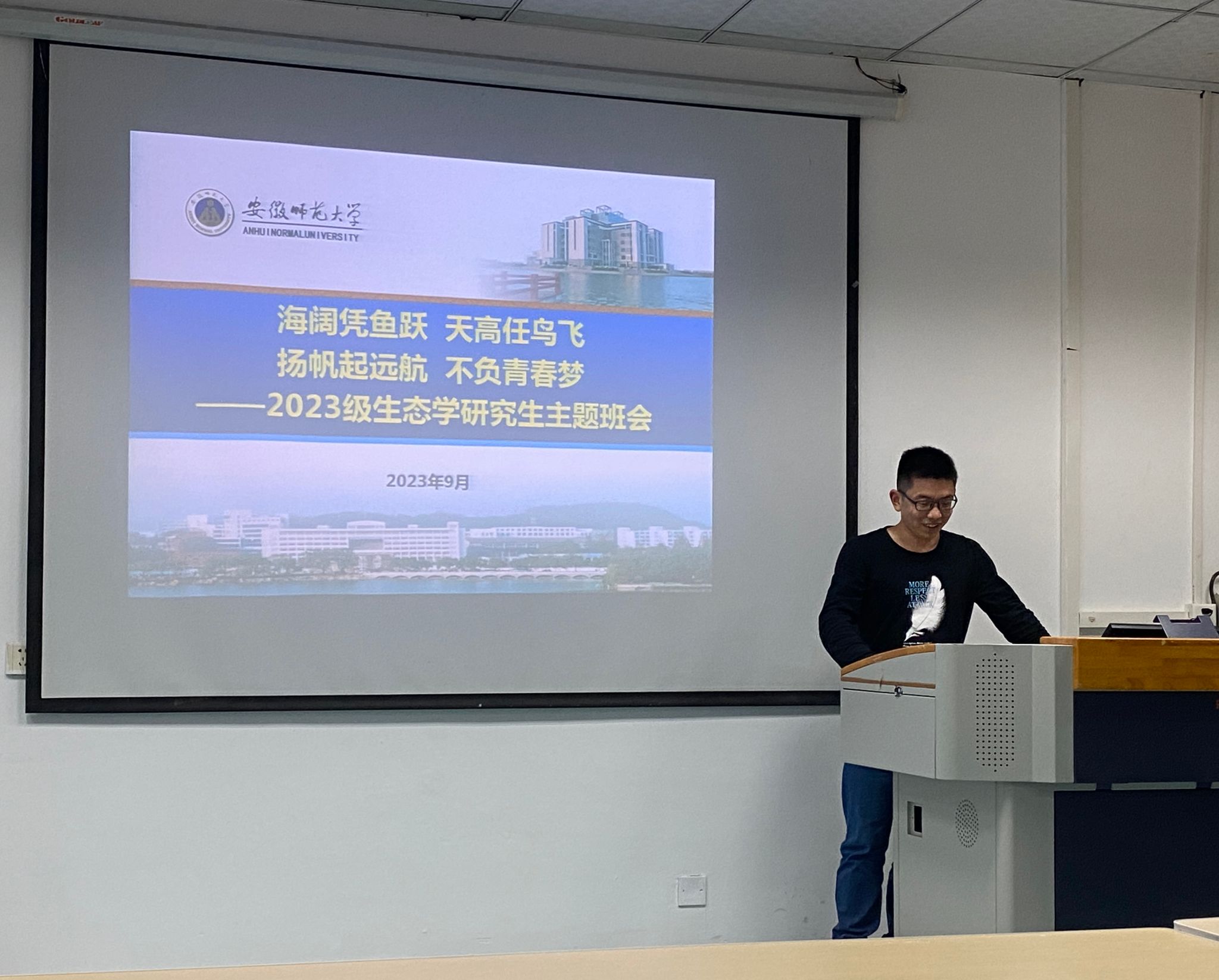 迎接新学期,展现新面貌,开启新征程。9月22日晚上,2023级生态学研究生新生主题班会在公司行政楼一楼会议室召开。本次班会以“海阔凭鱼跃,天高任鸟飞,扬帆起远航,不负青春梦”为主题,旨在引导新生思考明确未来三年在师大学习的规划和期望,增进相互认识和了解,为更快更好地融入校园环境和学习科研工作奠定基础。班会由研究生辅导员王丹丹主持,全体2023级生态学硕士及博士研究生新生参加了此次主题班会。