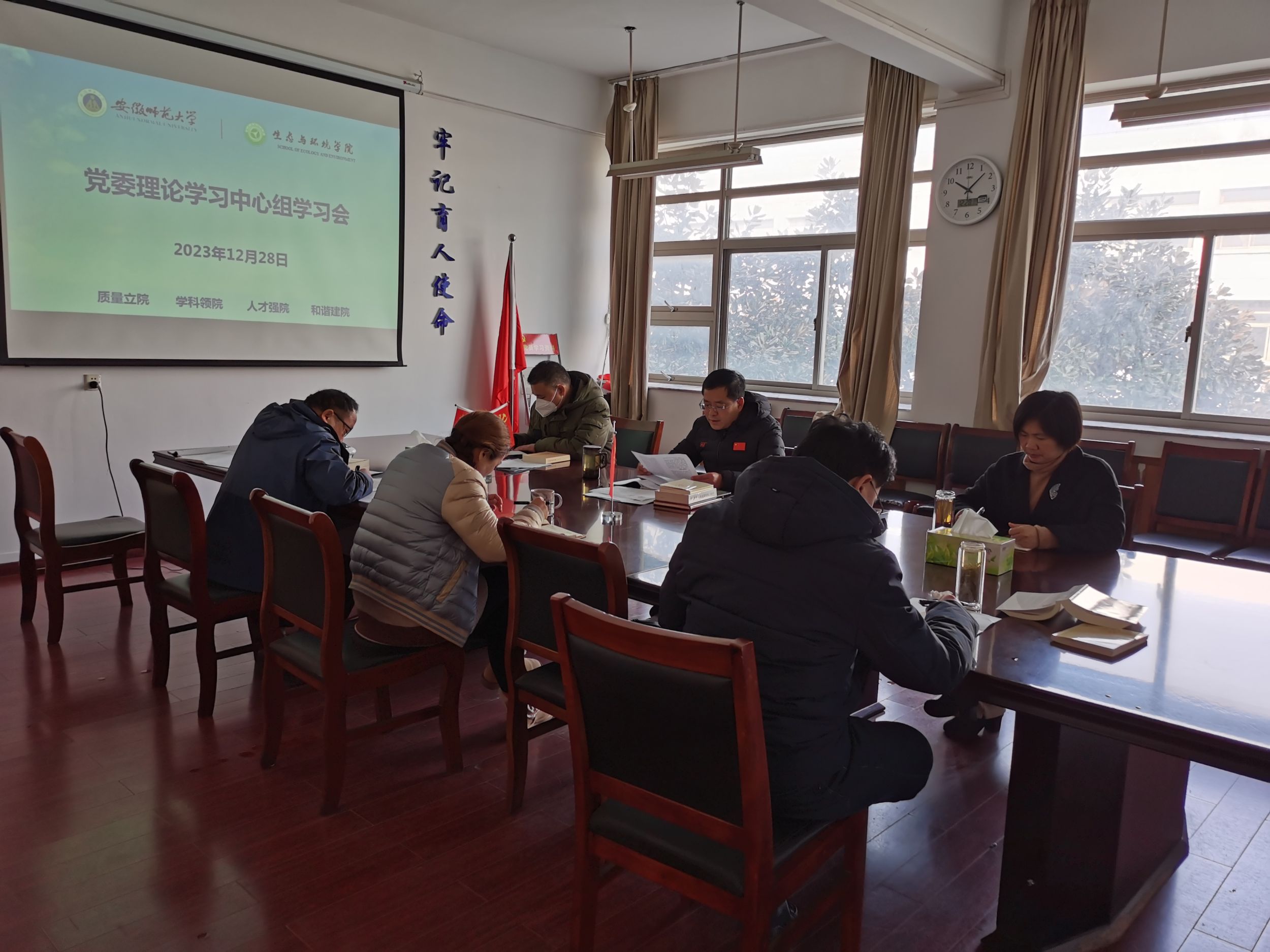 会上,与会人员集体观看学习了《中共中央举行纪念毛泽东同志诞辰130周年座谈会 习近平发表重要讲话 》《正确理解和领会习近平经济思想》《每日一习话·坚持发扬斗争精神》新闻视频。张伟领学了中共中央宣传部、中共中央组织部印发《关于进一步提高党委(党组)理论学习中心组学习质量的意见》的通知精神,重温了习近平总书记考察安徽重要讲话指示精神、省第十一次党代会精神;经理胡好远领学了《习近平著作选读第一卷》“深刻认识做好新形势下统战工作的重大意义”篇章内容和习近平总书记关于加强和改进人民信访工作的重要论述,解读了《英国365集团官网信访工作实施办法》;副经理严云志领学了《习近平法治思想学习纲要》“十一个坚持”、《习近平新时代中国特色社会主义思想学习纲要》“高质量发展”、《习近平谈治国理政》第四卷“贯彻总体国家安全观,构建大安全格局”等篇章内容。