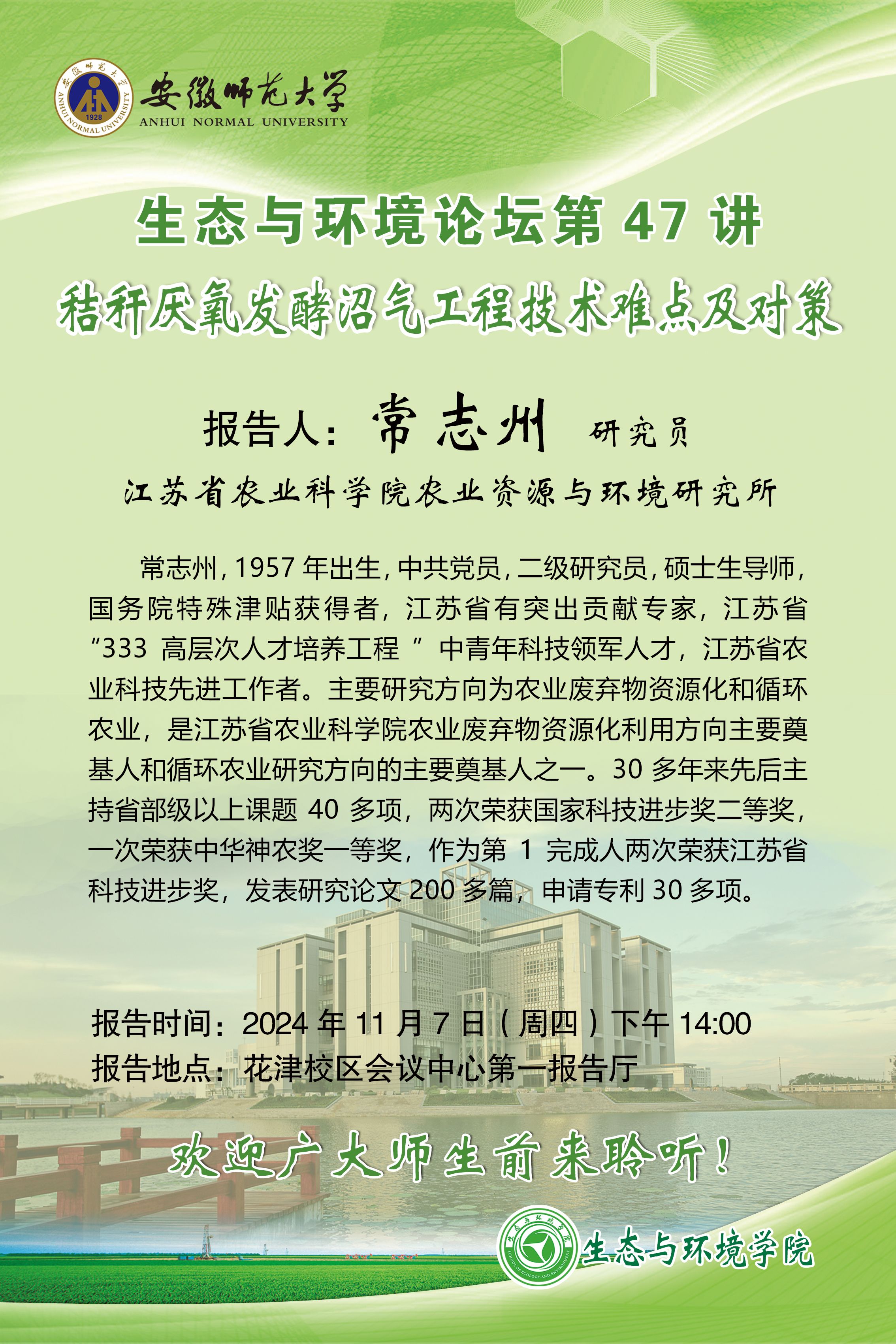 【学术预告】生态与环境论坛第47讲:秸秆厌氧发酵沼气工程技术难点及对策