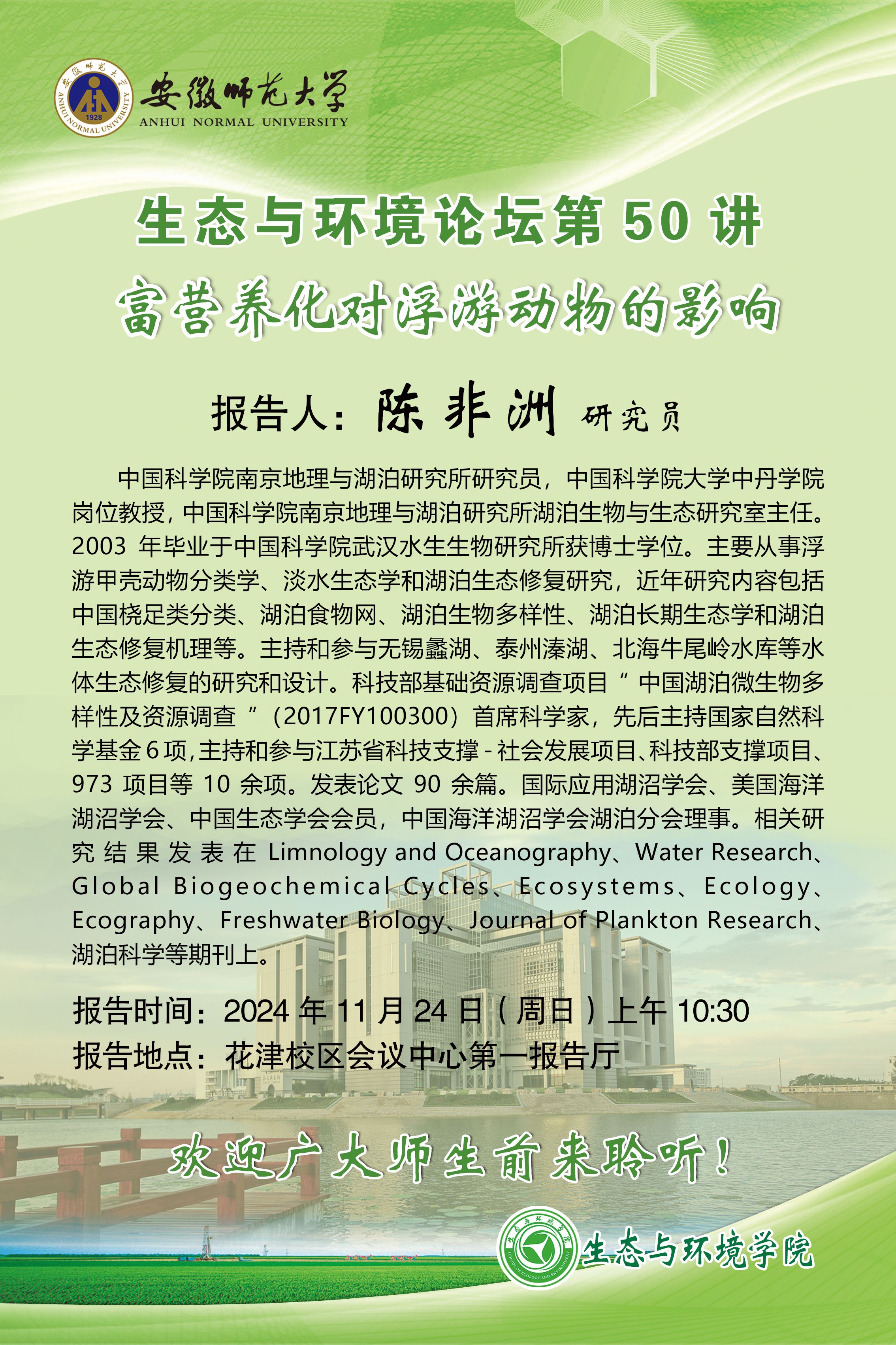 【学术预告】生态与环境论坛第50讲(2):富营养化对浮游动物的影响