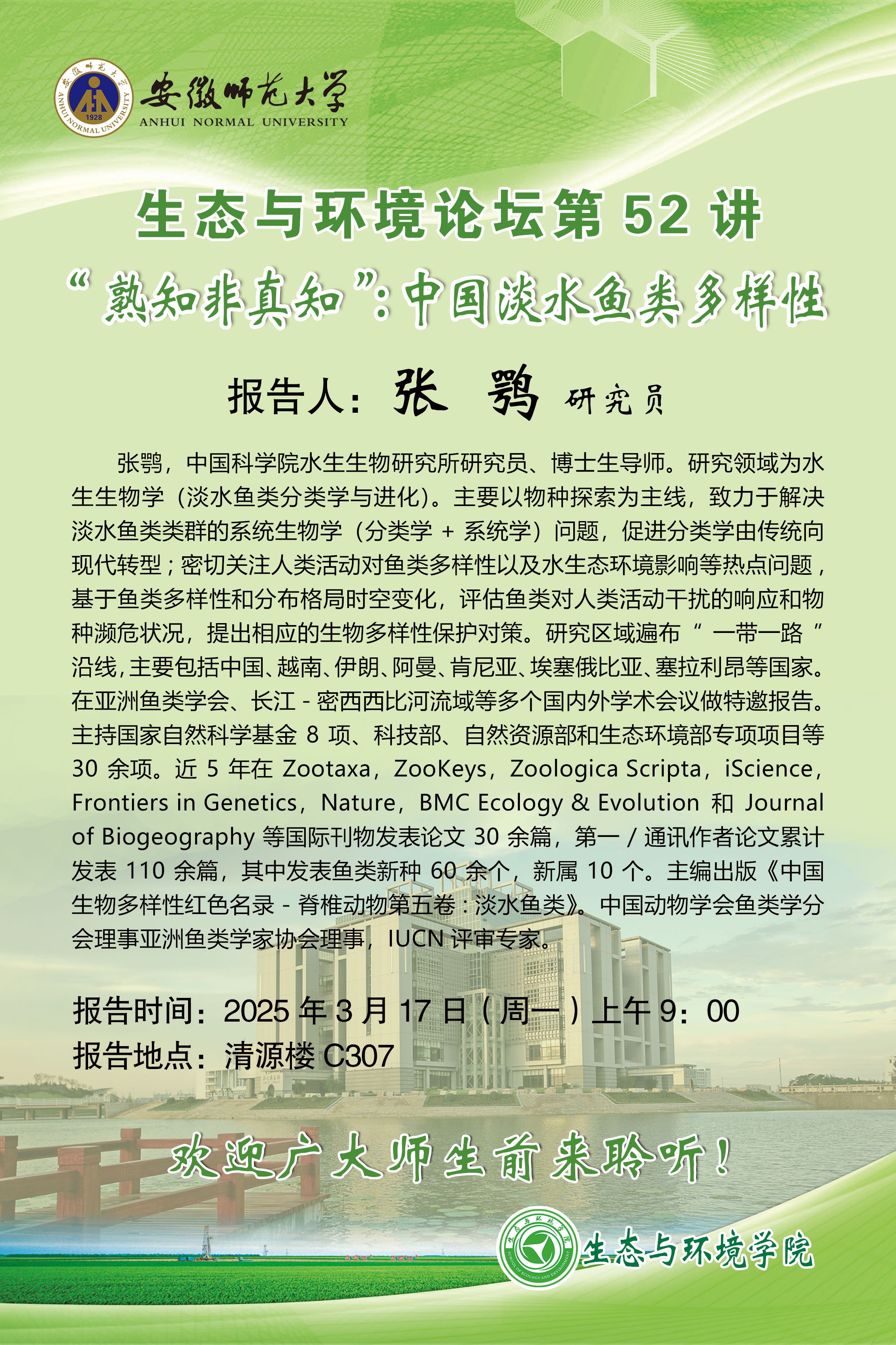 【学术预告】生态与环境论坛第52讲:“熟知非真知”: 中国淡水鱼类多样性