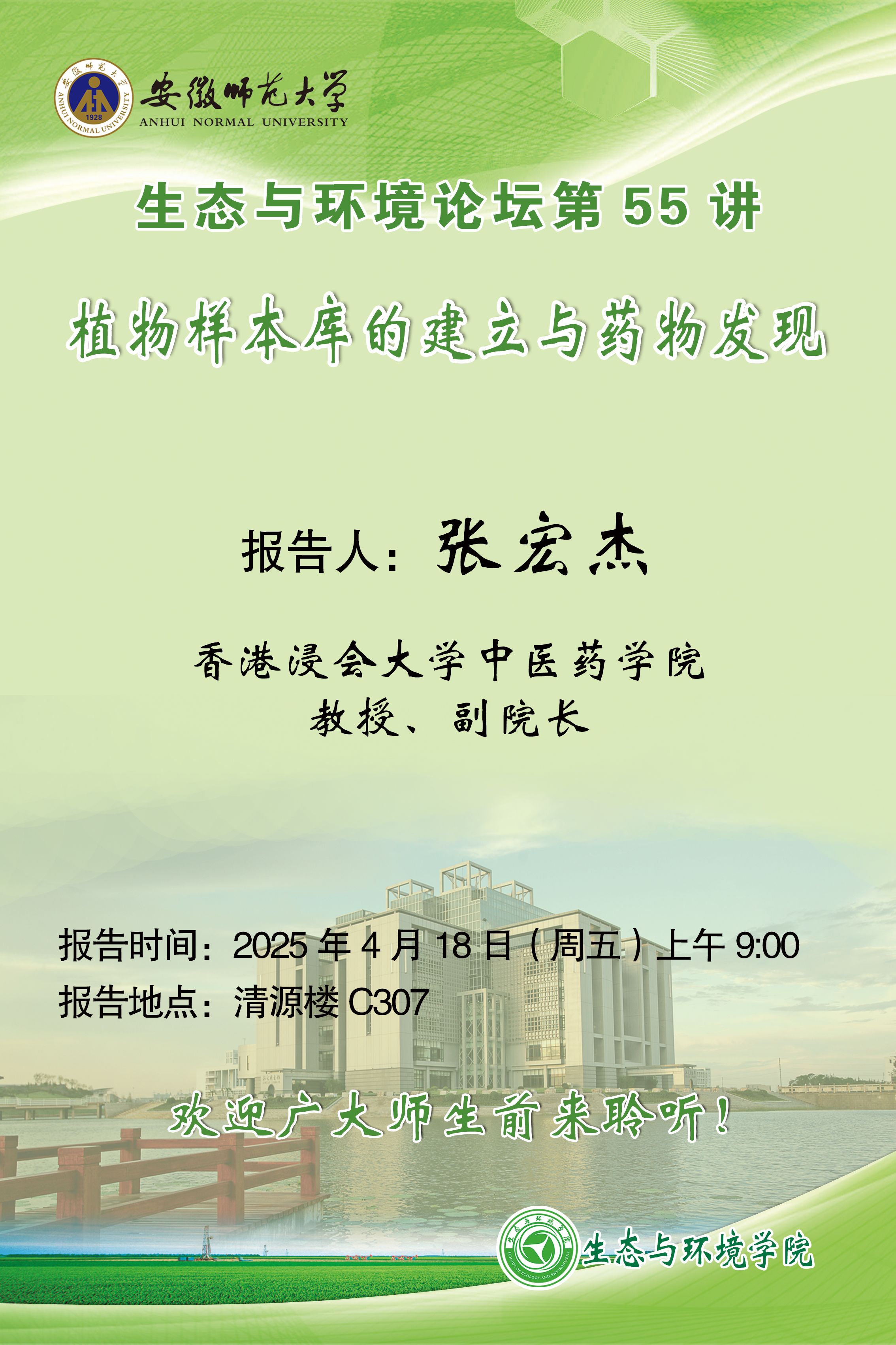 【学术预告】生态与环境论坛第55讲:植物样本库的建立与药物发现
