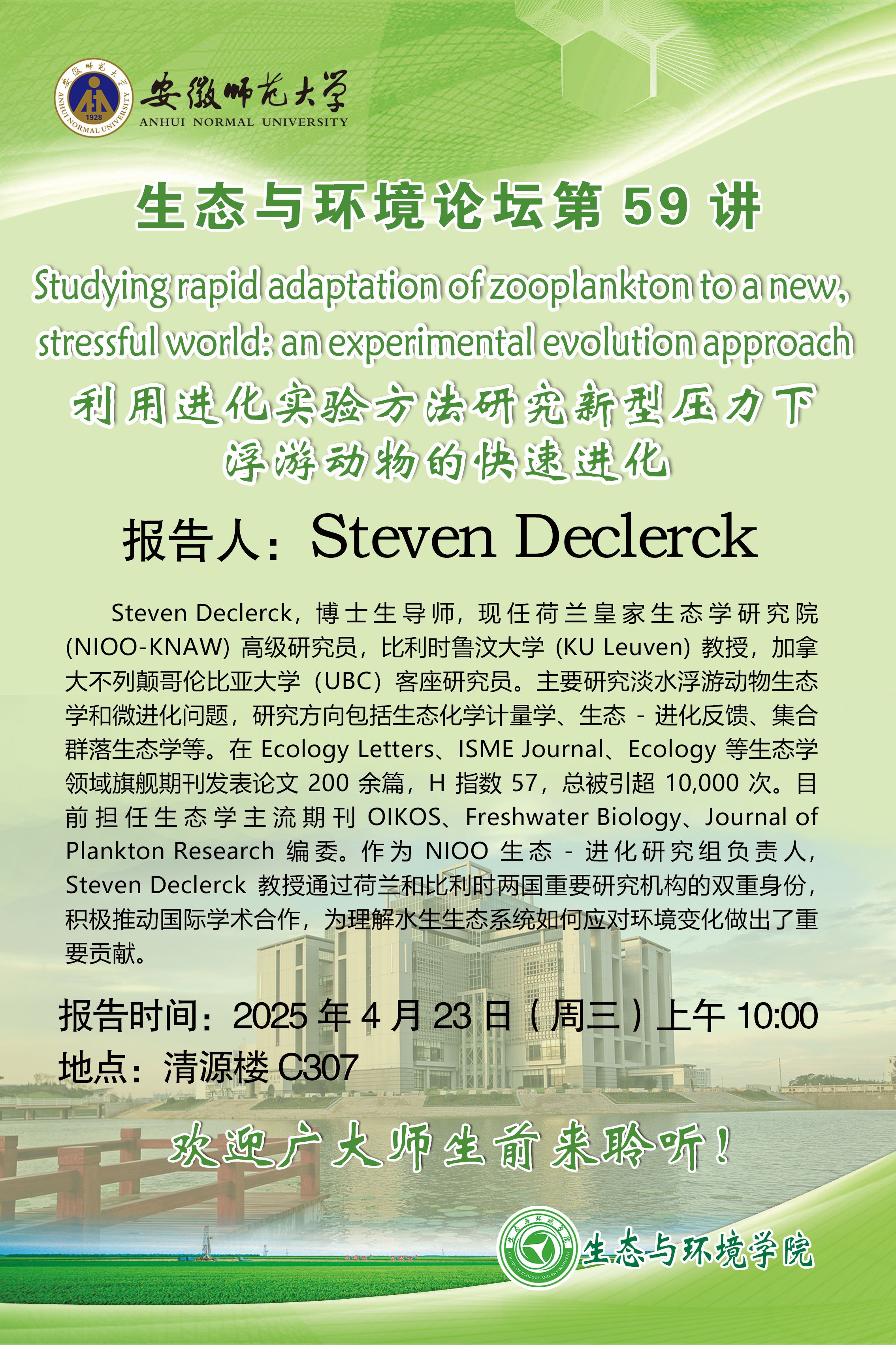【学术预告】生态与环境论坛第59讲:Studying rapid adaptation of zooplankton to a new, stressful world: an experimental evolution approach