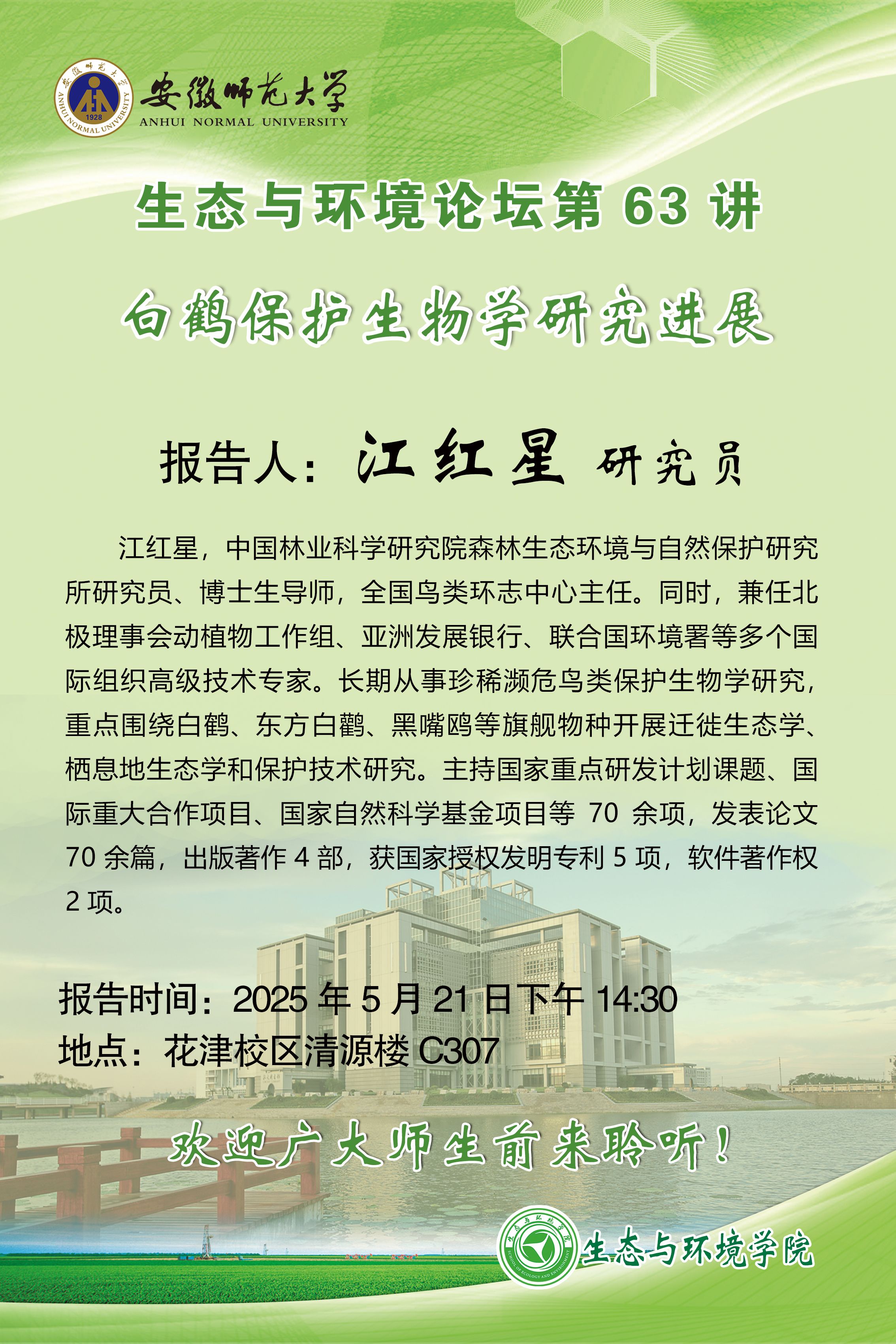 【学术预告】生态与环境论坛第63讲:白鹤保护生物学研究进展