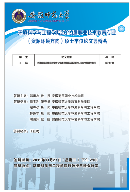 环工公司2019年下半年职业技术教育专业(资源环境方向)硕士学位论文答辩会